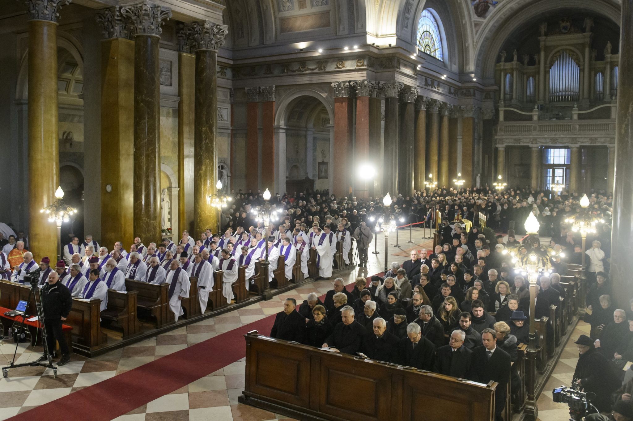 Gyászolók Seregély István nyugalmazott egri érsek, gyászszertartásán az egri főszékesegyházban 2019. január 8-án. – MTI/Komka Péter