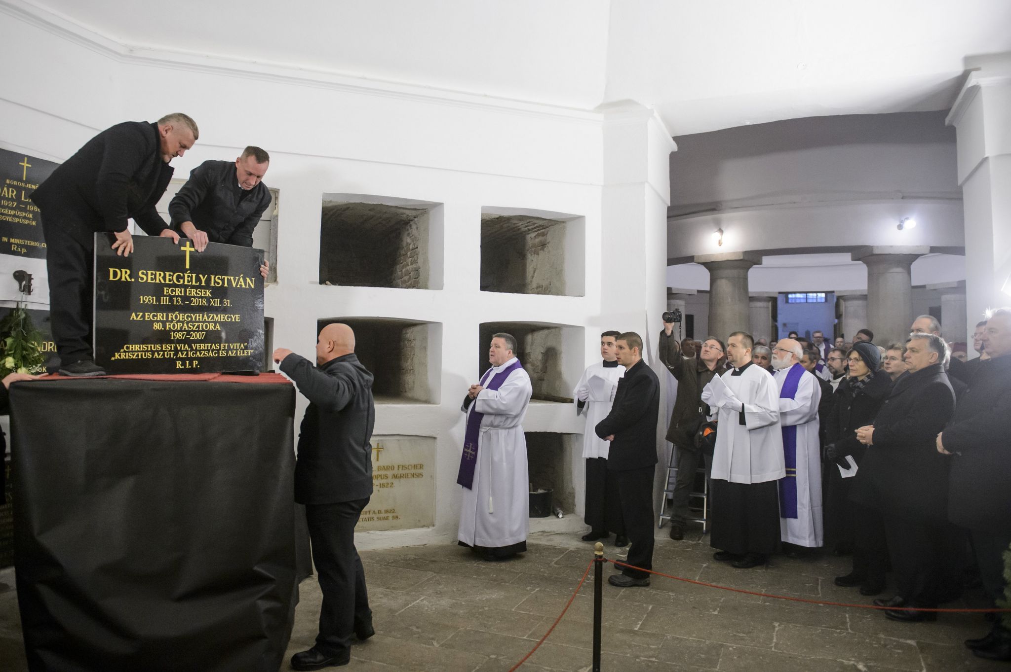 Eger, 2019. január 8. Seregély István nyugalmazott egri érsek, a Magyar Katolikus Püspöki Konferencia (MKPK) volt elnöke ravatala az egri fõszékesegyházban 2019. január 8-án. Seregély István nyolcvannyolcadik életévében 2018. december 31-én hunyt el. MTI/Komka Péter