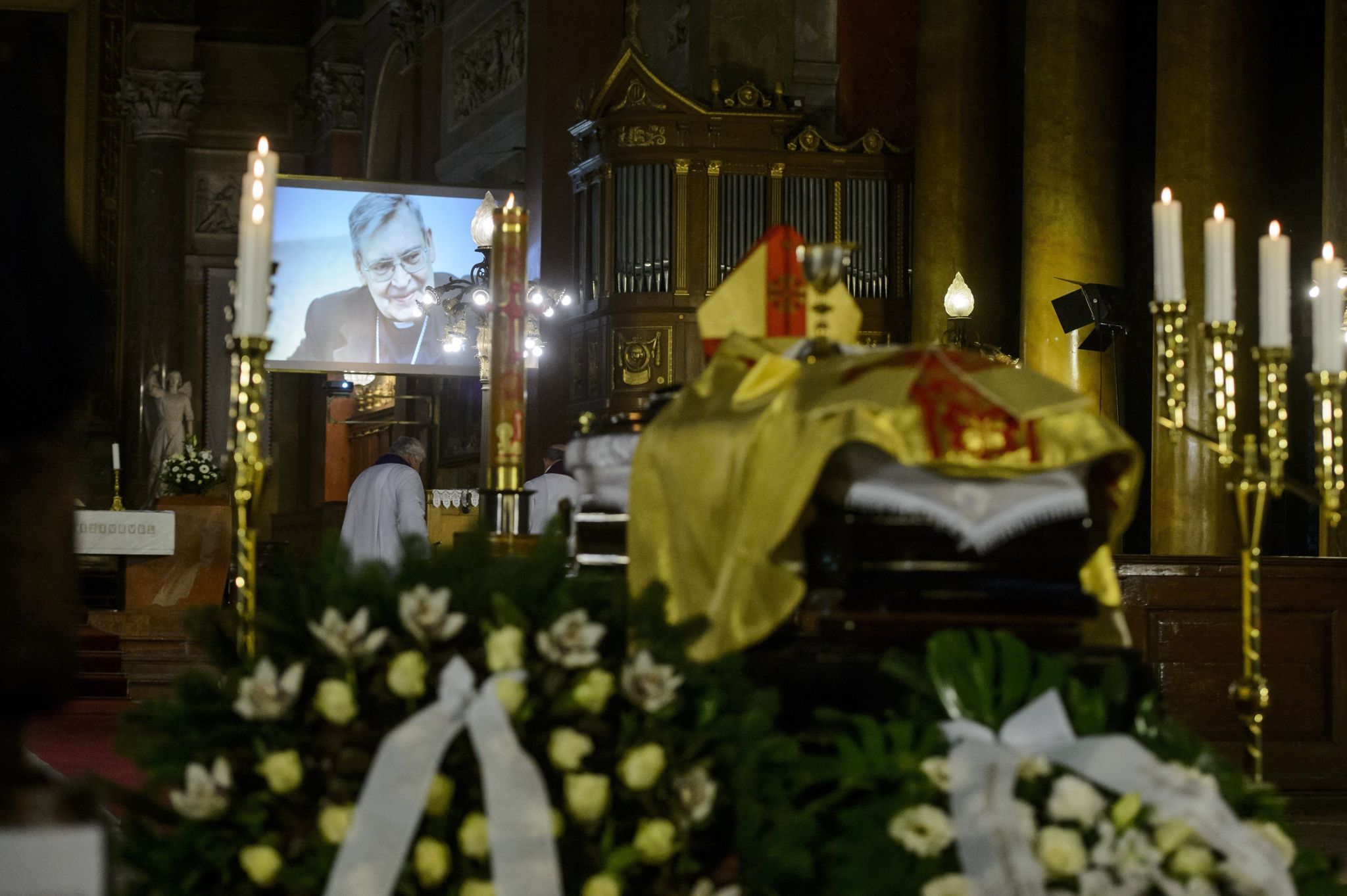Seregély István nyugalmazott egri érsek, a Magyar Katolikus Püspöki Konferencia volt elnöke ravatala az egri főszékesegyházban 2019. január 8-án. Seregély István nyolcvannyolcadik életévében 2018. december 31-én hunyt el. – MTI/Komka Péter