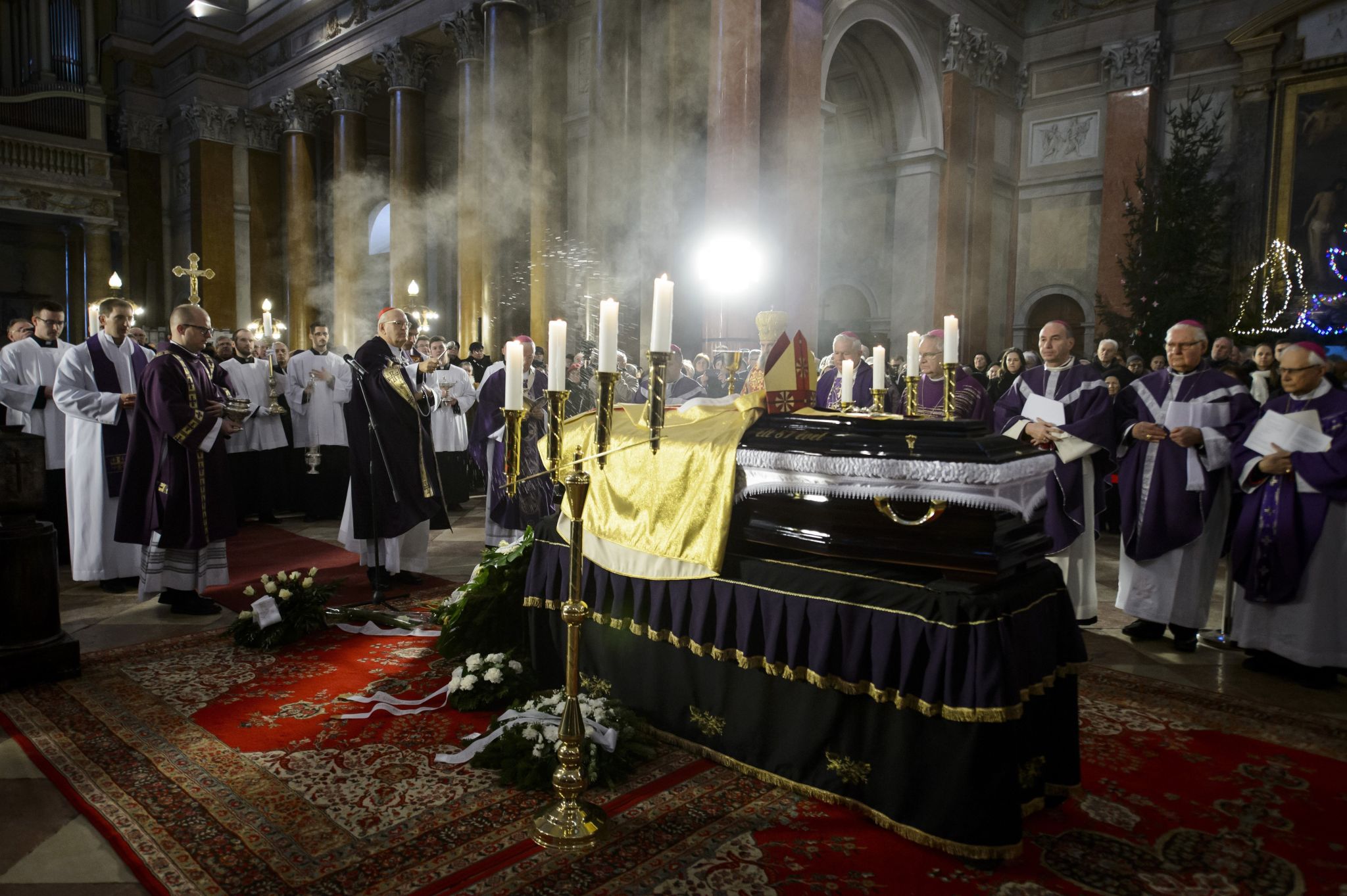 Erdő Péter bíboros, esztergom-budapesti érsek temetési szertartást végez Seregély István nyugalmazott egri érsek temetésén – MTI/Komka Péter
