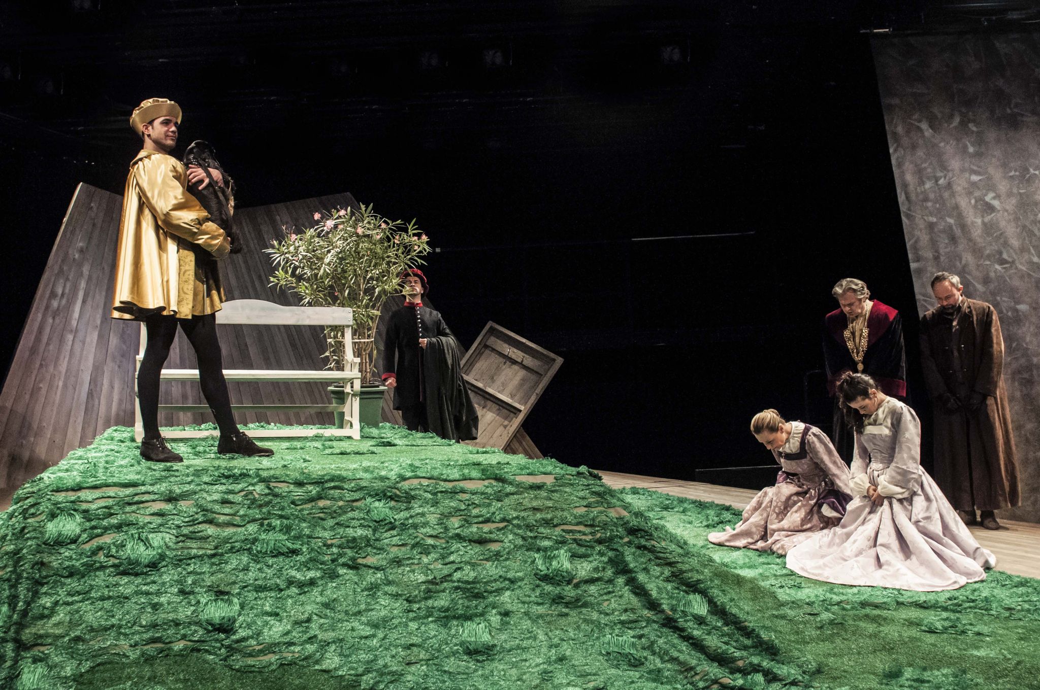 Fehér Tibor VIII. Henriket játssza, aki ugyan kevés időt tölt a színpadon, mégis az ő személye köré fonódik az egész színdarab.