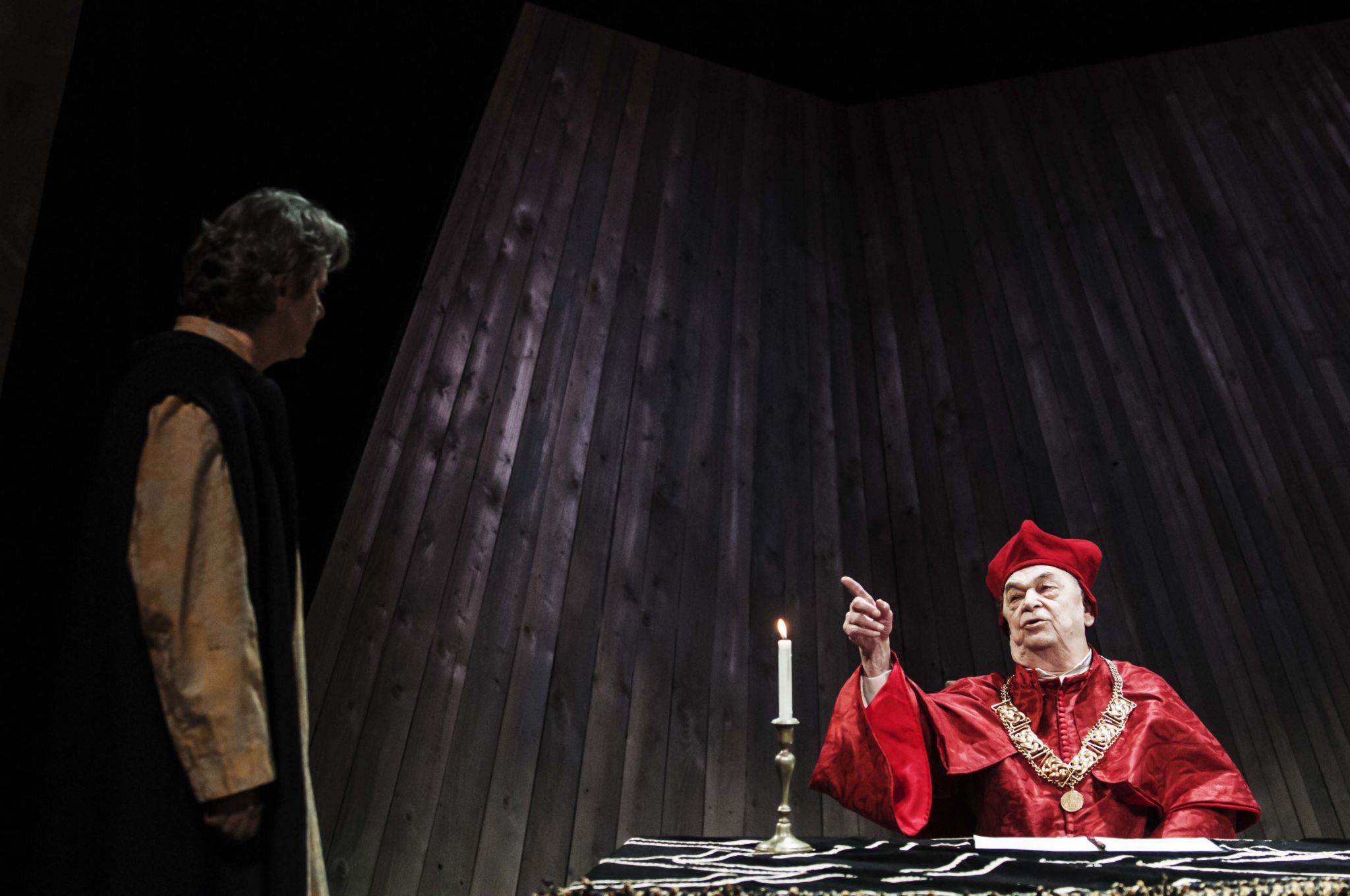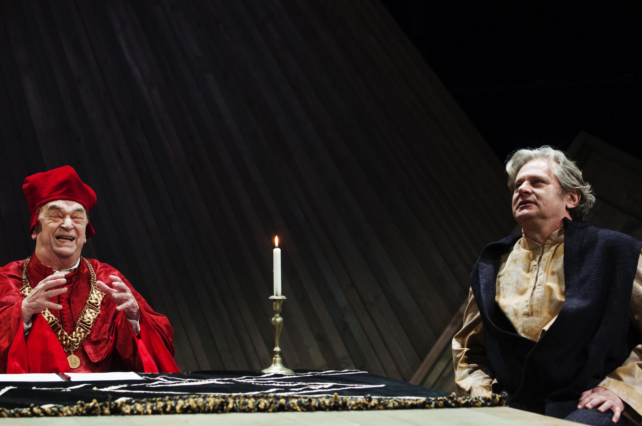 Az Egy ember az örökkévalóságnak című drámát Csiszár Imre rendezésében mutatták be szombaton a Nemzeti Színházban, Rátóti Zoltán Thomas Moret, Schnell Ádám Thomas Cromwellt, Fehér Tibor VIII. Henriket, Bodrogi Gyula Wolsey bíborost és Söptei Andrea Alice Moret alakítja.