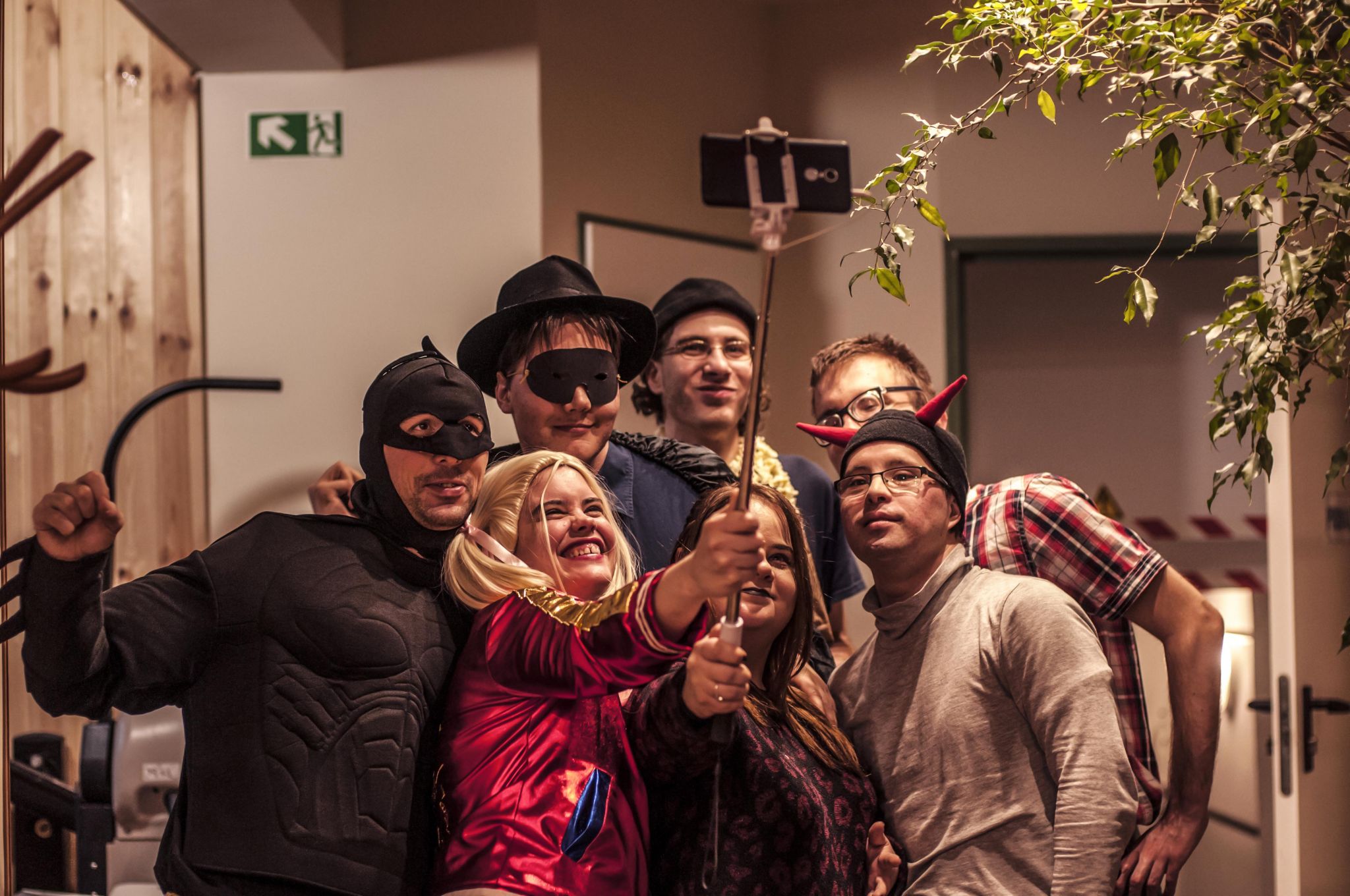 A kávézóban tartott farsangra is ellátogattunk, ahol a dolgozók a legkülönbözőbb jelmezekben, óriási hangulatban buliztak: