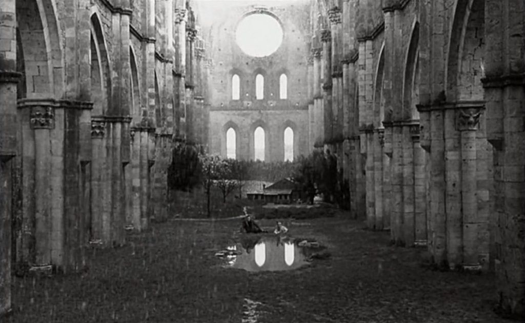 A Miasszonyunk katedrális elfeketedett gerendáinak mai látványa és Rubljov elkeseredettsége a tető nélküli, omladozó templomban ugyanazt az érzést váltja ki belőlünk. Nincs szomorúbb látvány annál, mint amikor egy tető nélküli üszkös falú templomba esik az eső, hull a hó…