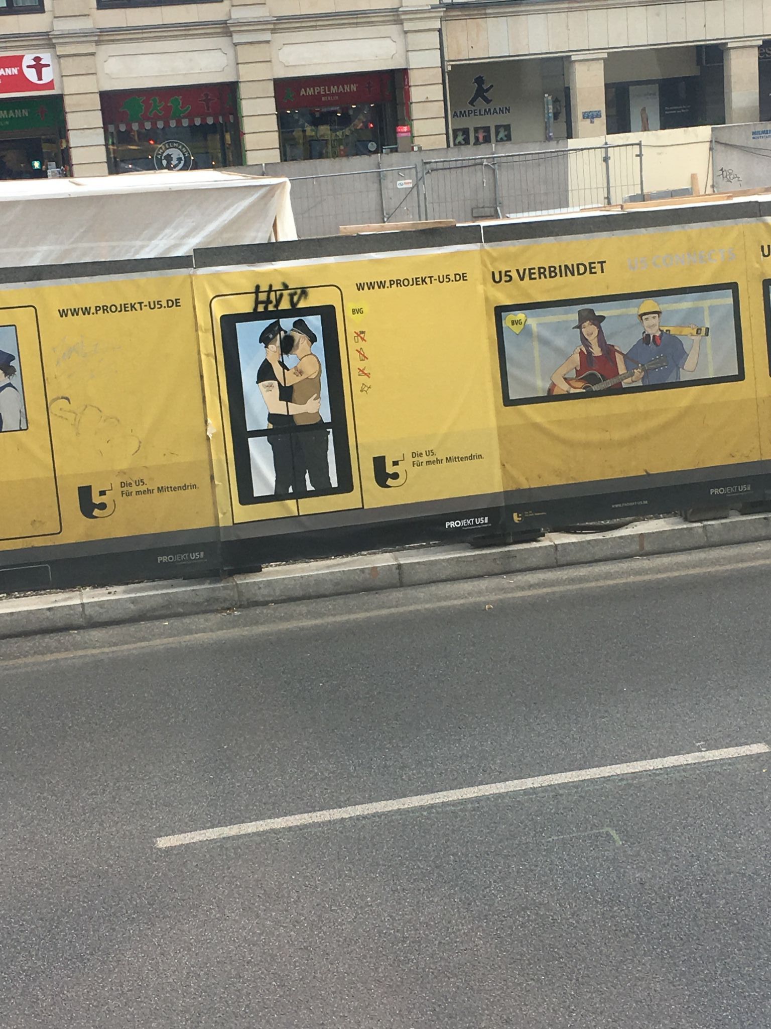 A német főváros pályaudvarain, plázáiban, a Haupstadt buszain hétköznapi termékeket reklámoznak csupán, olyanokat, mint a közösségi közlekedés használata, biztosítási ajánlatok, netán utazásokat népszerűsítenek. Prágában sem mást hirdetnek, csak máshogy.