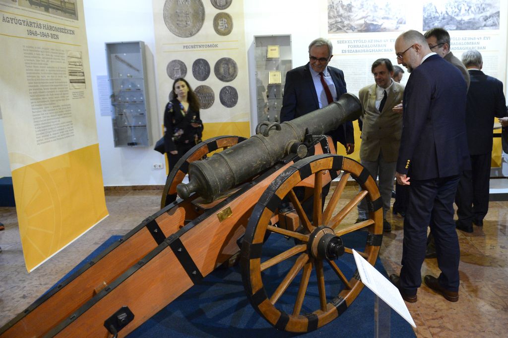 Mint kifejtette, az ágyú mellett olyan 1848-49-es forradalmi ereklyék láthatók a kamara kiállításon, mint Kiss Ernő tábornok nyerge, Deák Ferenc pipája, Kossuth Lajos cigarettaszipkája, Bem József sétabotja vagy Zathureczky István a kufsteini börtönben készített kosárkája. Kelemen Hunor hangsúlyozta: a most kiállított tárgyak jelentőségét az adja, hogy történelmi hőseink használták, vagy éppen ők készítették.