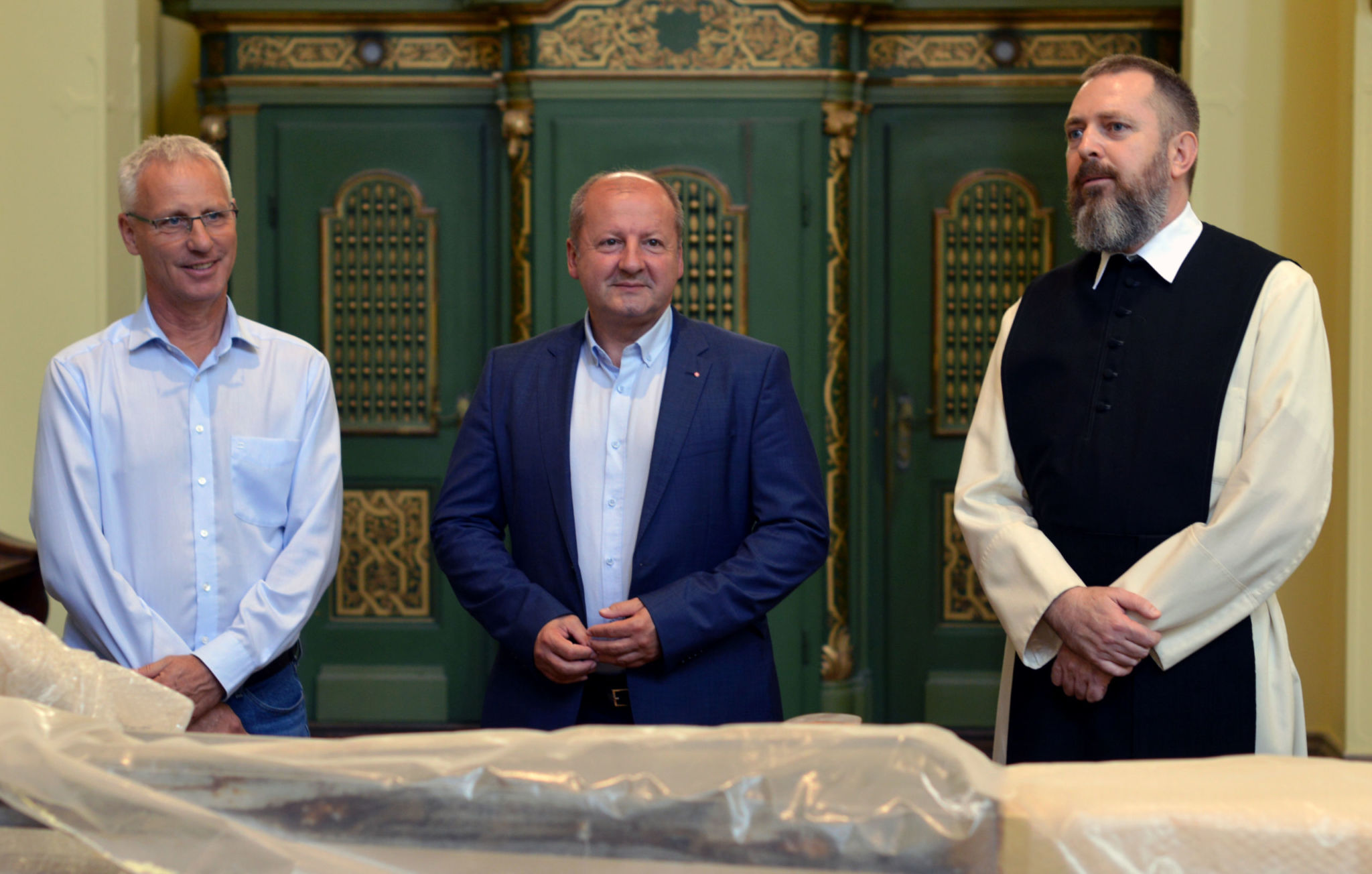 Soltész Miklós, Simicskó István és Szkaliczki Csaba Örs, a kereszt megáldása előtti pillanatokban (Fotó: Tóth Gábor, Vasárnap.hu)