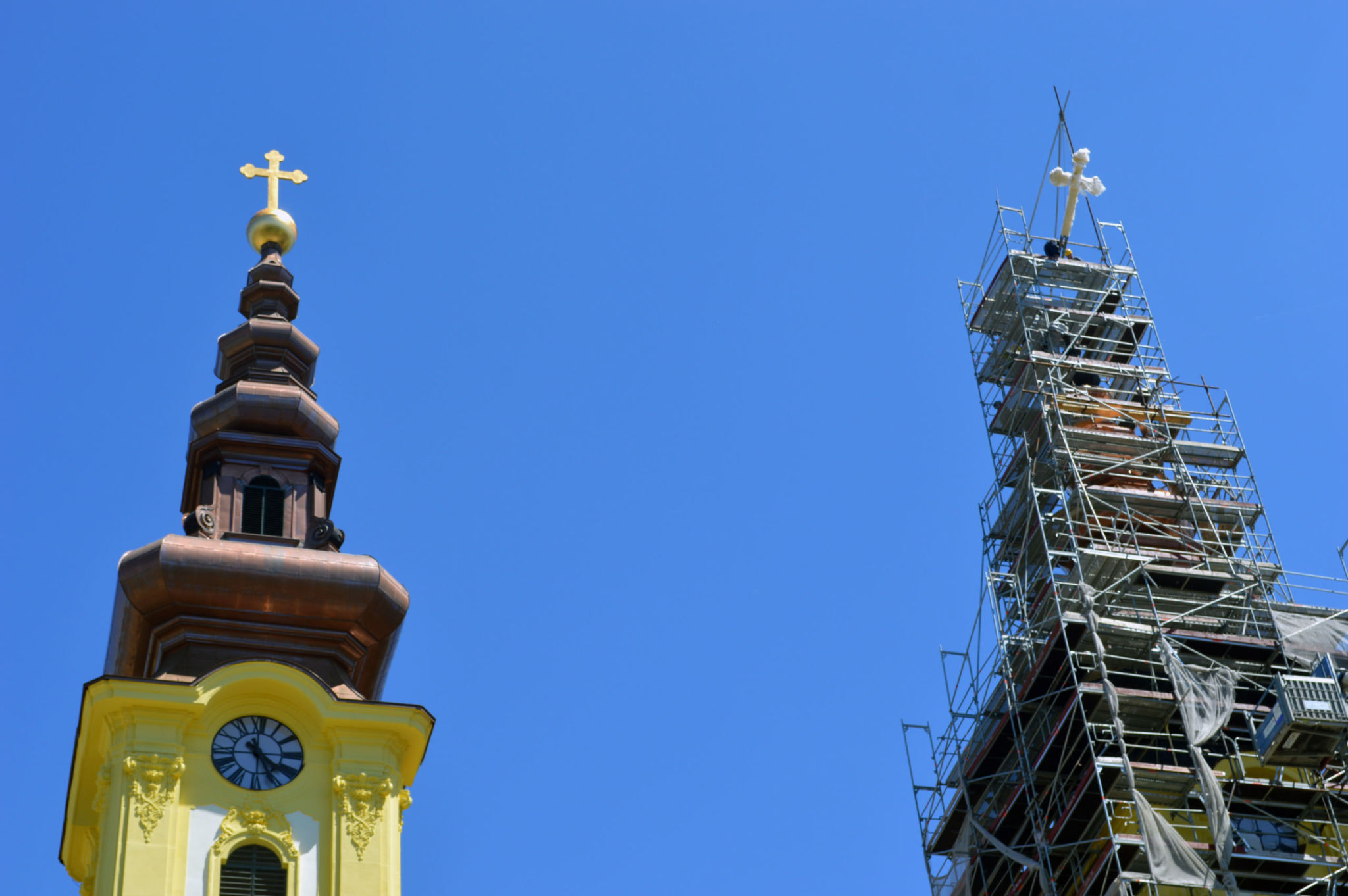 Még hiányos a déli templomtorony (Fotó: Tóth Gábor, Vasárnap.hu)