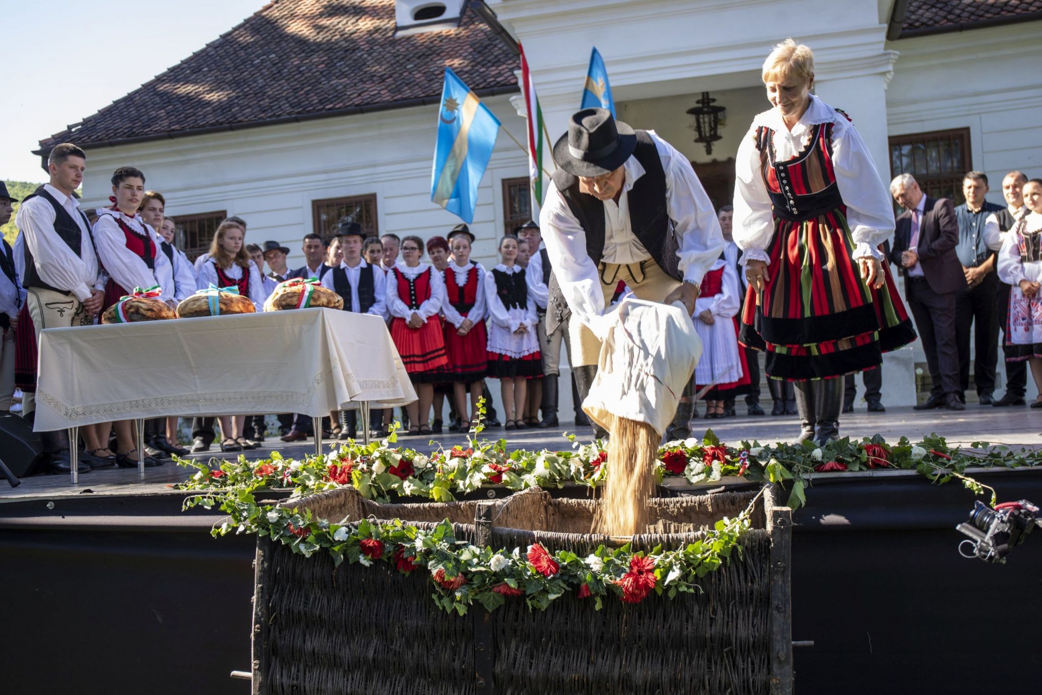 Az első zsák búzát Jakab István, a MAGOSZ elnöke öntötte a szuszékba. A búza Magyarországról érkezett, a székely búzával való összeöntése a magyar-magyar összefogás erőteljes jelképe. Ezt követően a három megye, majd a székely székek, végül kisrégiók, települések képviselői öntötték egybe a felajánlásra szánt búzát.