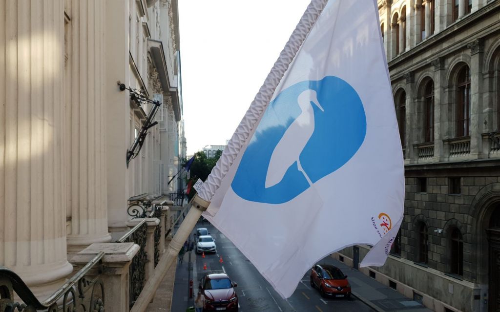 Az emberi erőforrások minisztere az épületre kitűzött zászló képe mellé azt írta: „családbarát országot építünk”.