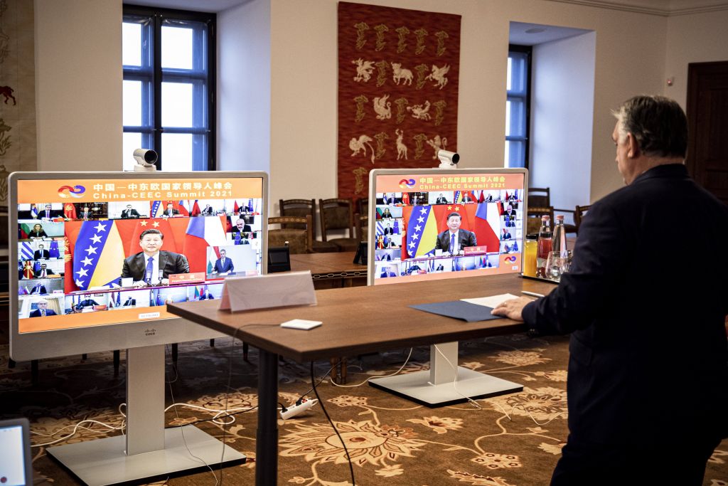 (Kiemelt képünkön: A Miniszterelnöki Sajtóiroda által közreadott képen Orbán Viktor miniszterelnök részt vesz a Kína és a kelet-közép-európai országok közti, videókonferencián tartott egyeztetésen a Karmelita kolostorban 2021. február 9-én. A képernyőn Hszi Csin-ping kínai elnök. MTI/Miniszterelnöki Sajtóiroda/Fischer Zoltán)