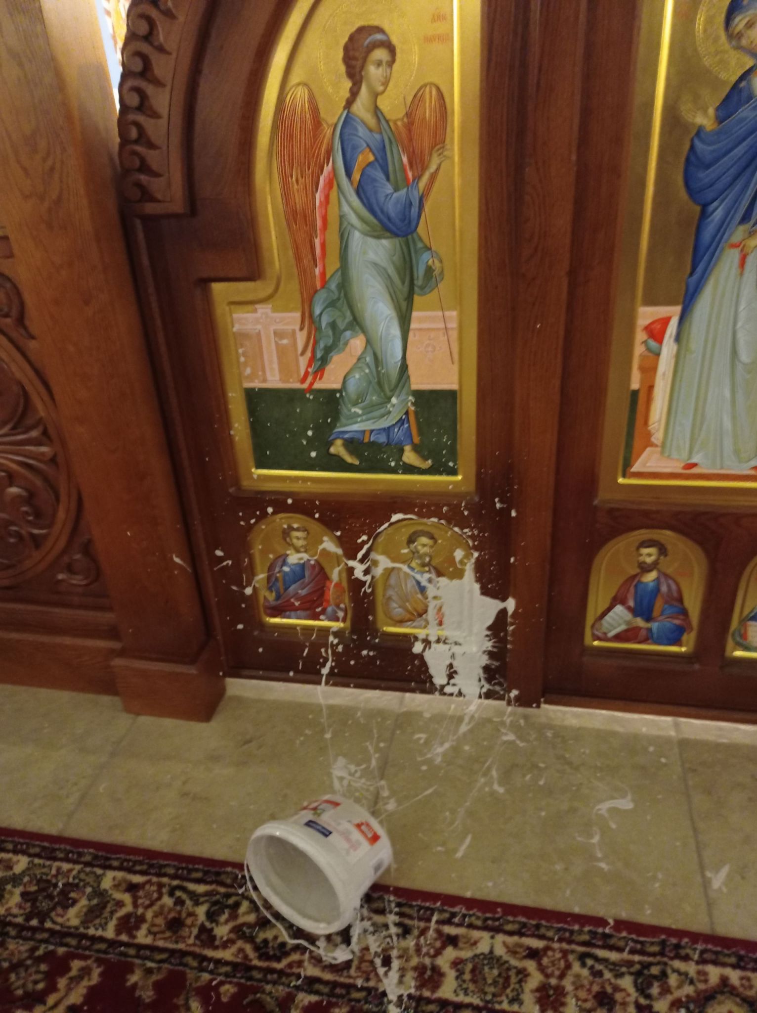 – A templom melletti emeletes házban lakó testvérünk hívta a rendőrséget, miután a támadó berúgta az ajtót, aminek a hangja petárdarobbanásként hallatszott. Majd egy járókelő hívott fel, hogy ég a templom. Gyerekeimmel azonnal oda siettünk. A templomban már alig lehetett látni a füsttől, csak az égő padokat láttuk. A sekrestyéből kis edényekben vizet hoztunk, hogy eloltsuk a lángokat. Miután ez sikerült, az ikonokról próbáltam letörölni a festéket, de sajnos addigra már teljesen rászáradt.