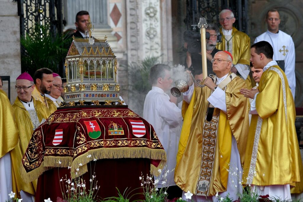 Kiemelt képünkön Erdő Péter bíboros, esztergom-budapesti érsek megáldja a Szent Jobb ereklyét az államalapító Szent István király ünnepén tartott szentmisén a Szent István-bazilika előtt 2021. augusztus 20-án. MTI/Czeglédi Zsolt
