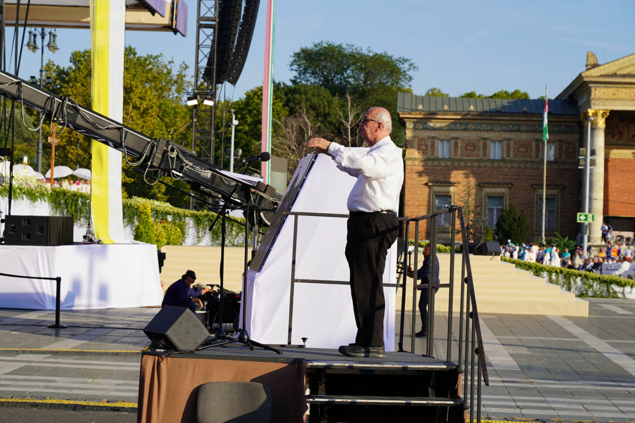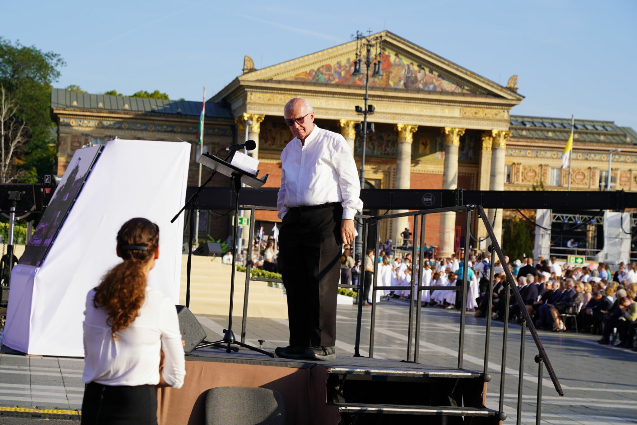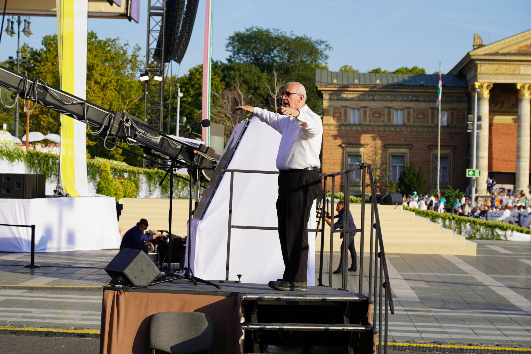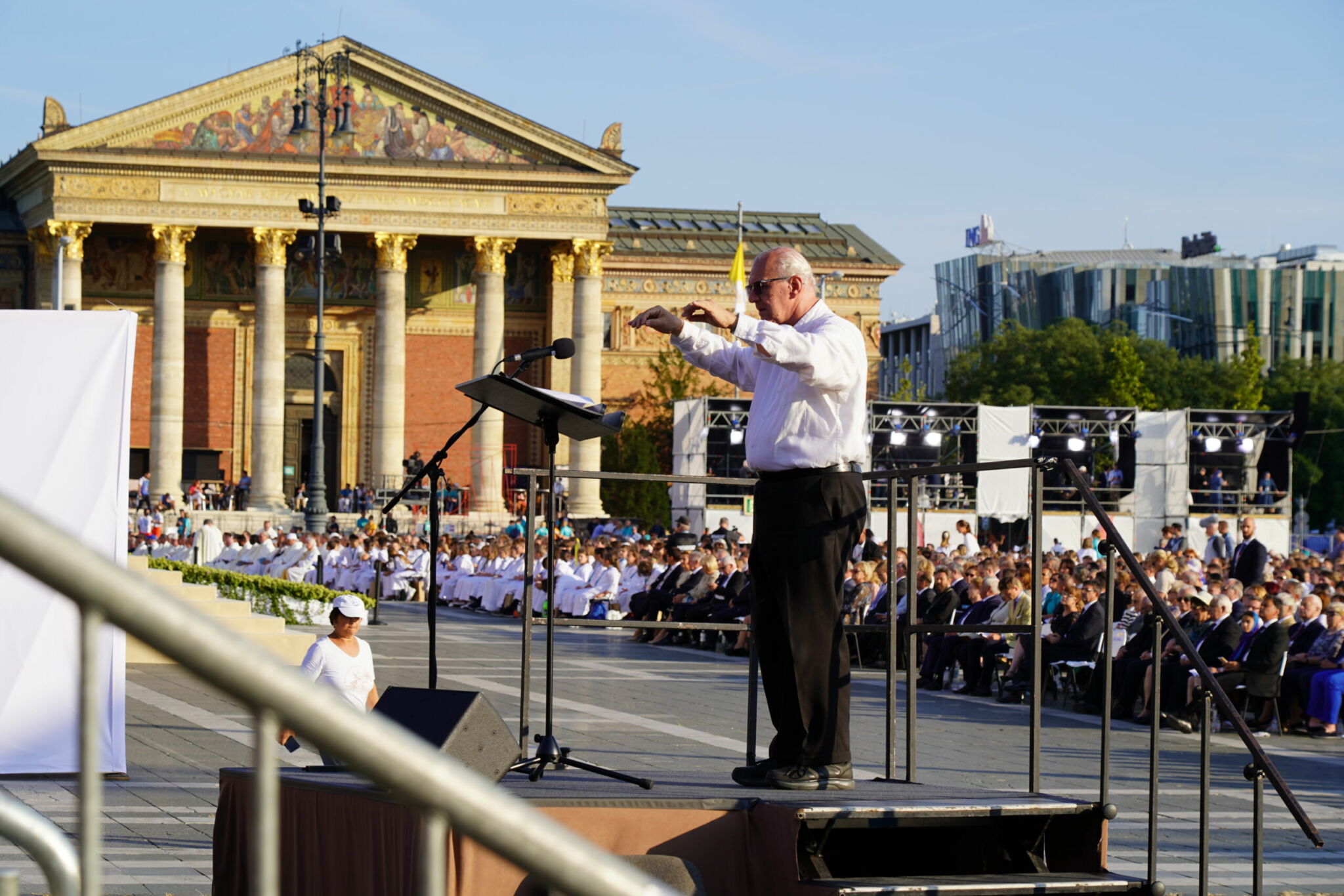 – Valóban ez az egyik legkiszámíthatatlanabb tényező. A liturgia egy élő folyamat, dráma, amely folyton változik, ezért a vele együtt élő, együtt lélegző zenétől nagy rugalmasságot kíván. Sokszor kell azonnal dönteni, változtatni. Erre többször is sor került a kongresszus szentmiséin. Próbálunk ugyan előre kalkulálni, hogy mennyi idő lehet egy-egy bevonulás, egy-egy cselekmény, de ez soha nem pontos. Hálásak vagyunk azért, hogy mindvégig megtapasztalhattuk a nagy „főrendező”, a Szentlélek segítő jelenlétét.