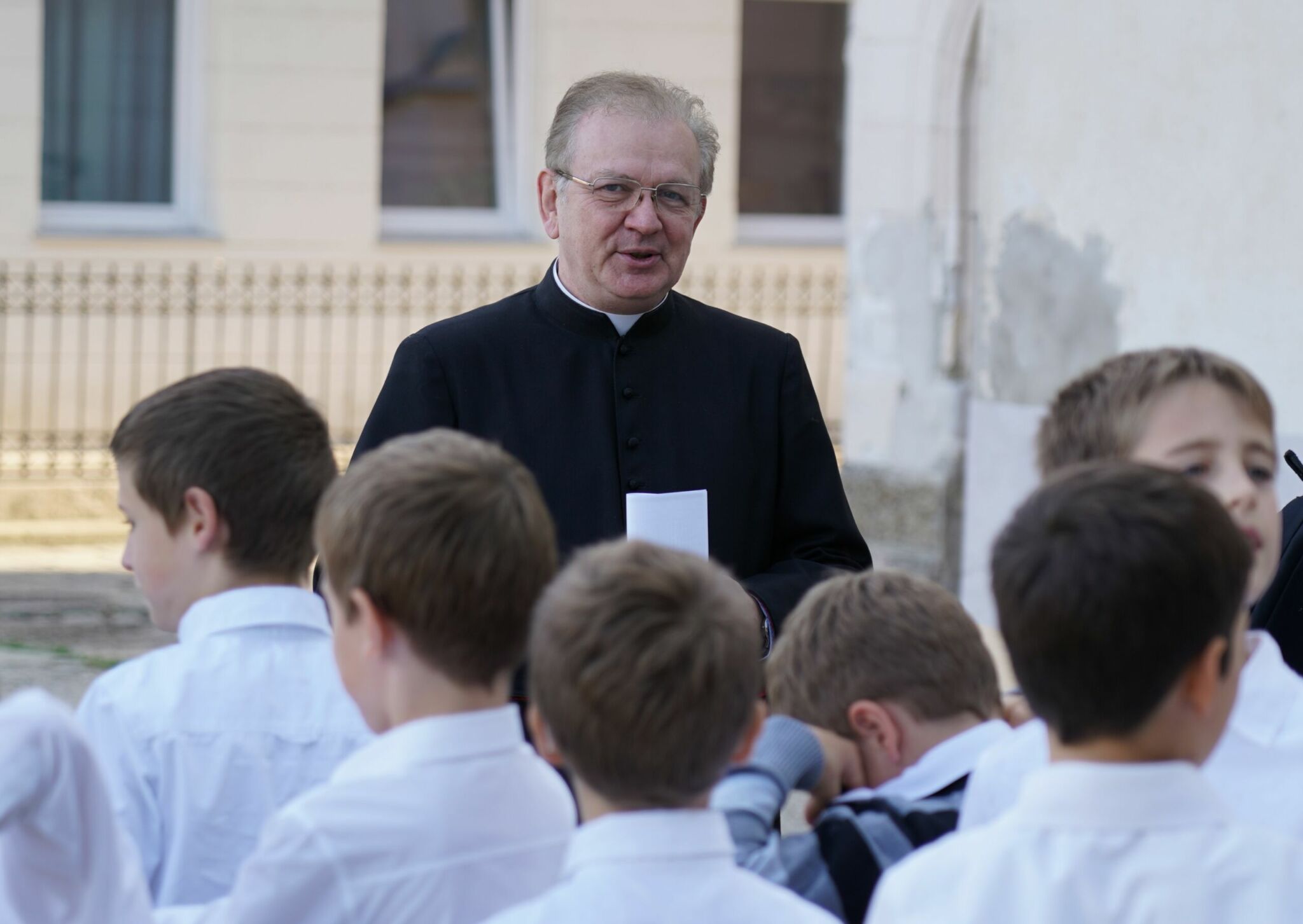 A magvetés a mi közös dolgunk, a miénk és a tiétek – fordult személyes szavakkal a zeneigazgató atya a jelenlévő szülőkhöz. Elmondta: nagyon szép időket élünk, annak ellenére, hogy mindenki szidja.