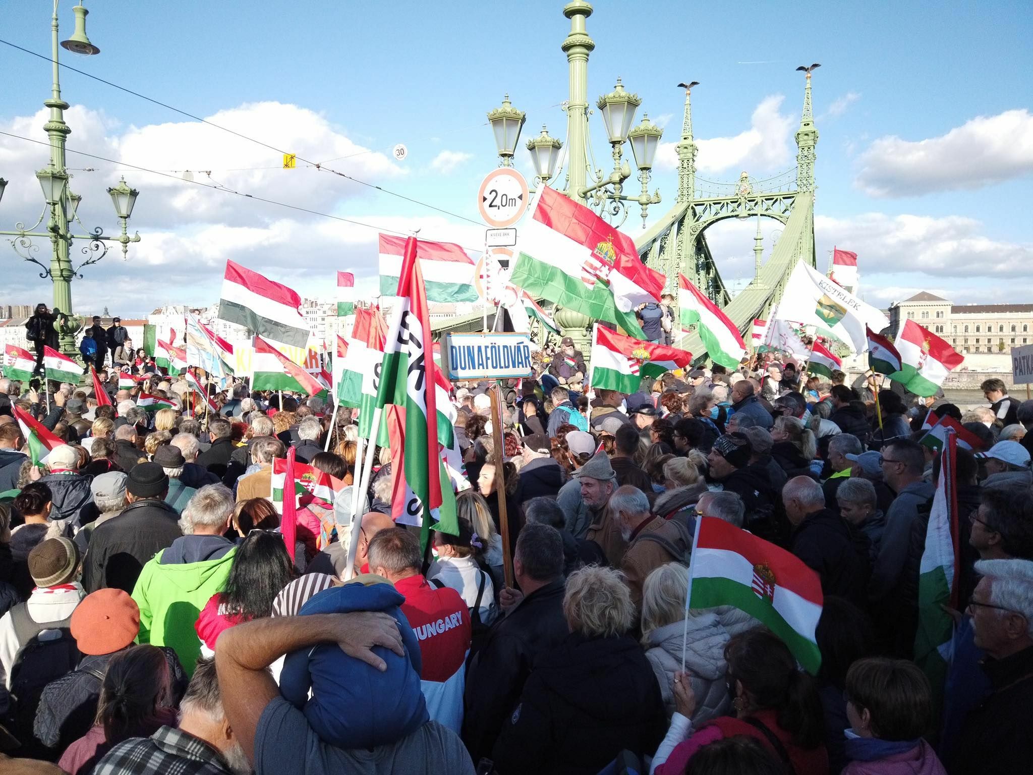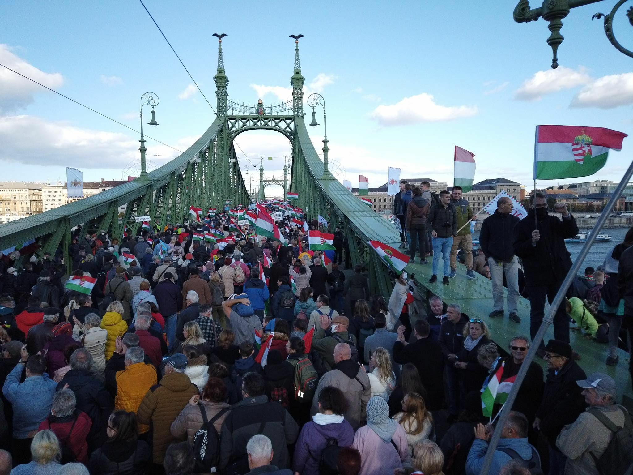 A menet indulása előtt a Szabadság híd budai hídfőjénél egy Csepel teherautó platójáról Csizmadia László, a CÖF-CÖKA vezetője az összegyűlt tömegnek azt mondta: „készek vagyunk együtt az európai zsidó-keresztény civilizáció megvédésére.”