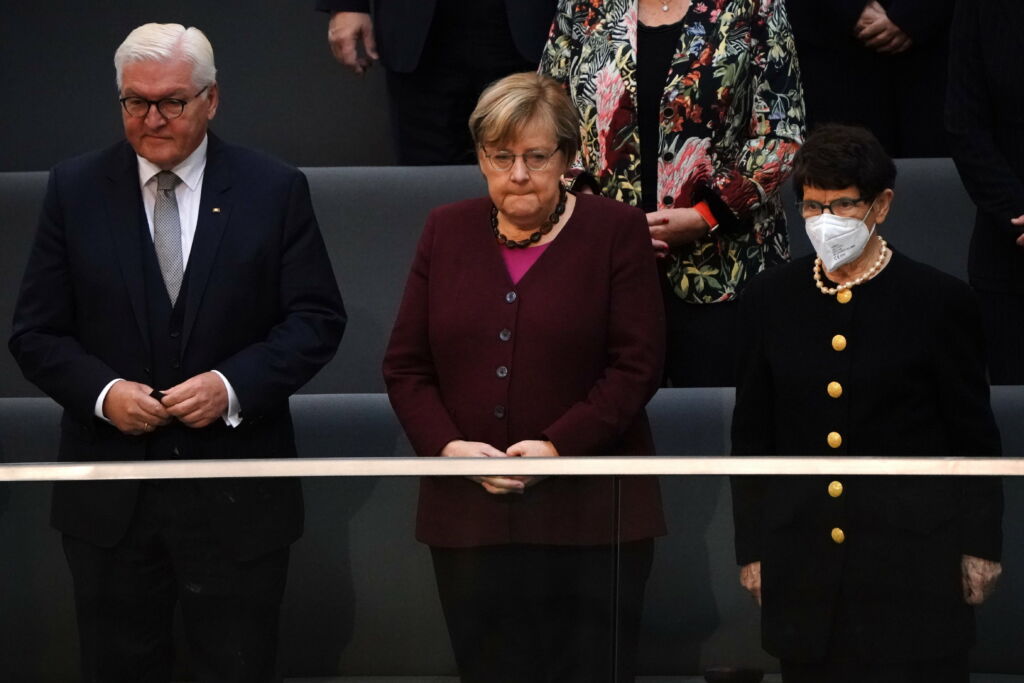 Kiemelt képünkön Frank-Walter Steinmeier német államfő, Angela Merkel leköszönő német kancellár és Rita Süssmuth korábbi házelnök részt vesz az új német szövetségi parlament (Bundestag) alakuló ülésén Berlinben 2021. október 26-án. MTI/EPA/Clemens Bilan