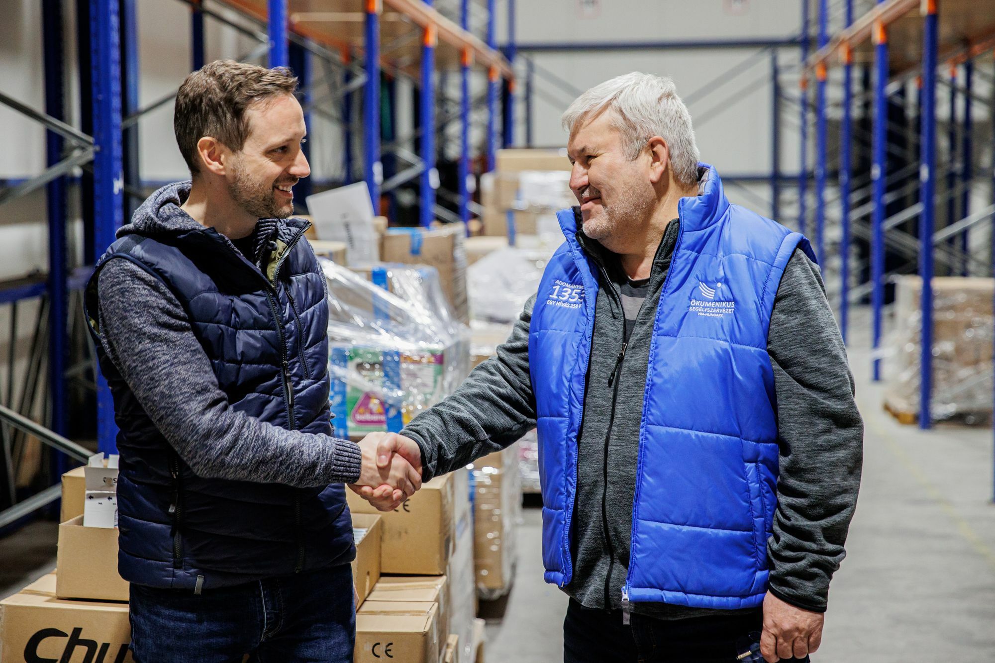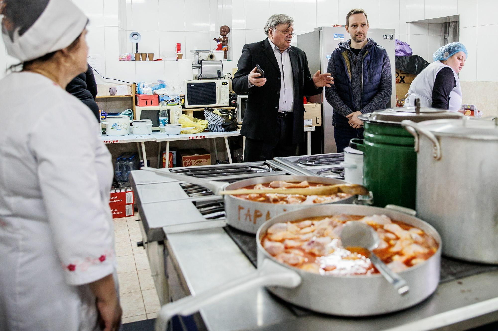Azbej Tristan Gerevich Jánossal, a Magyar Ökumenikus Segélyszervezet kárpátaljai vezetőjével. Az államtitkár humanitárius missziót vezetett Kárpátaljára 2022.03.16-án. Forrás: Facebook/Azbej Tristan