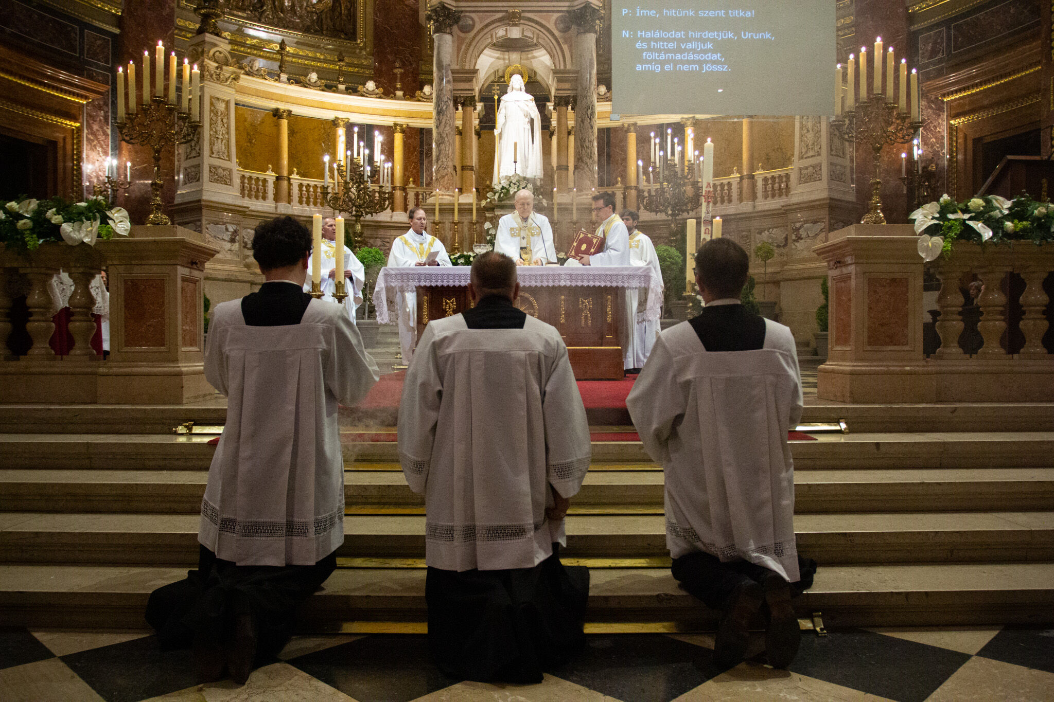 A címlapképen Erdő Péter bíboros, esztergom-budapesti érsek ünnepi húsvéti szentmisét mutat be az ünnep vigíliáján a budapesti Szent István-bazilikában 2022. április 16-án. Forrás: MTI/Máthé Zoltán