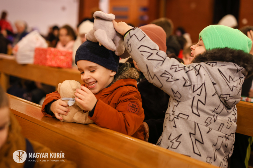 A Magyar Szentek templomában több mint száz gyermek és családja vehetett át ajándékot Erdő Péter bíboros, prímás, érsektől, Herczegh Anitától, a Katolikus Karitász jószolgálati nagykövetétől és Soltész Miklóstól, a Miniszterelnökség egyházi és nemzetiségi kapcsolatokért felelős államtitkárától.