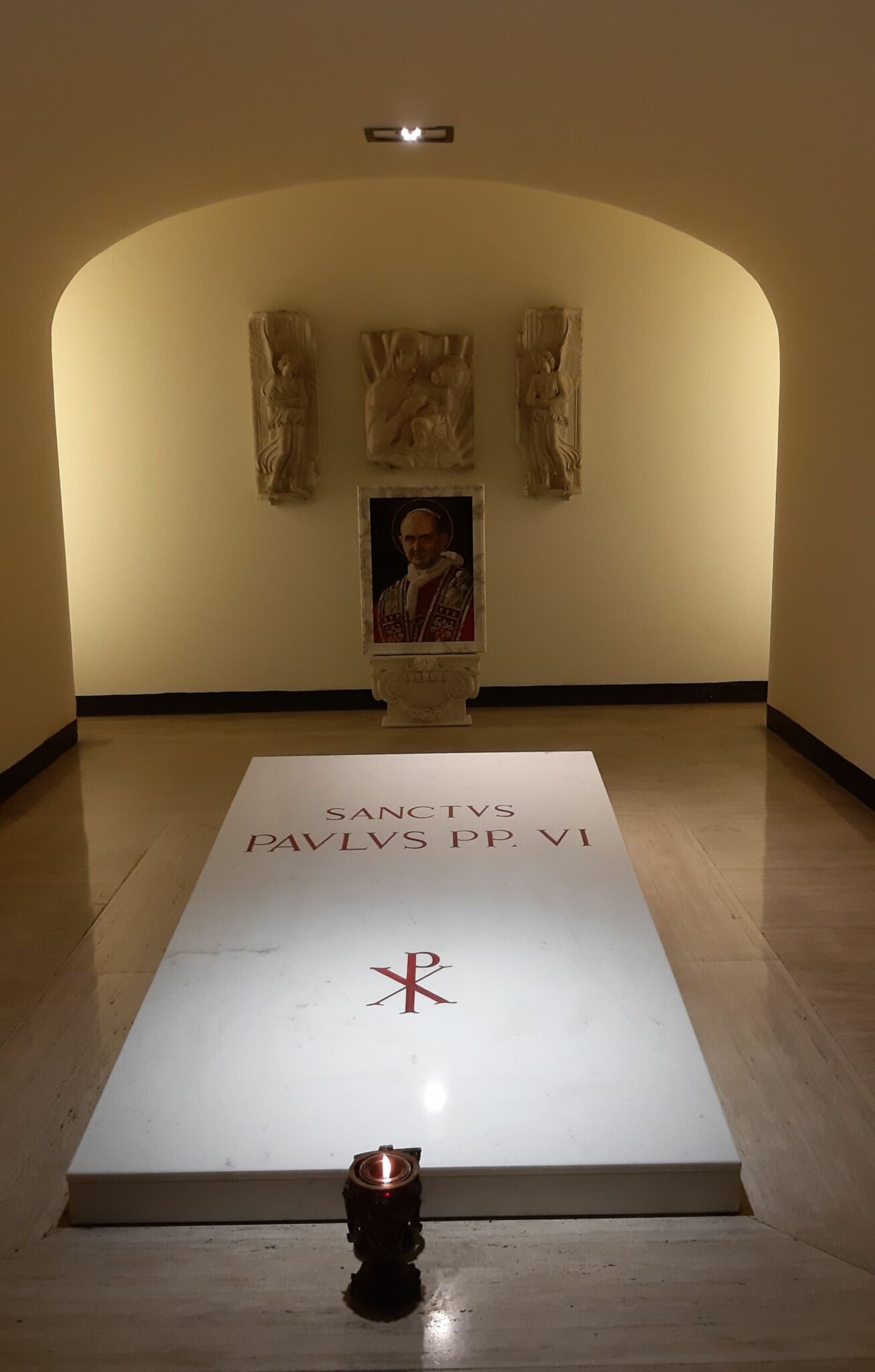 A boldoggá és szentté avatott pápák testét viszont a Grottákból felviszik a bazilika valamelyik mellékoltárához. Így történt X. Piusz, XXIII. János és II. János Pál esetében is, ám Szent VI. Pál és Boldog I. János Pál továbbra is eredeti sírjában nyugszik az altemplomban.