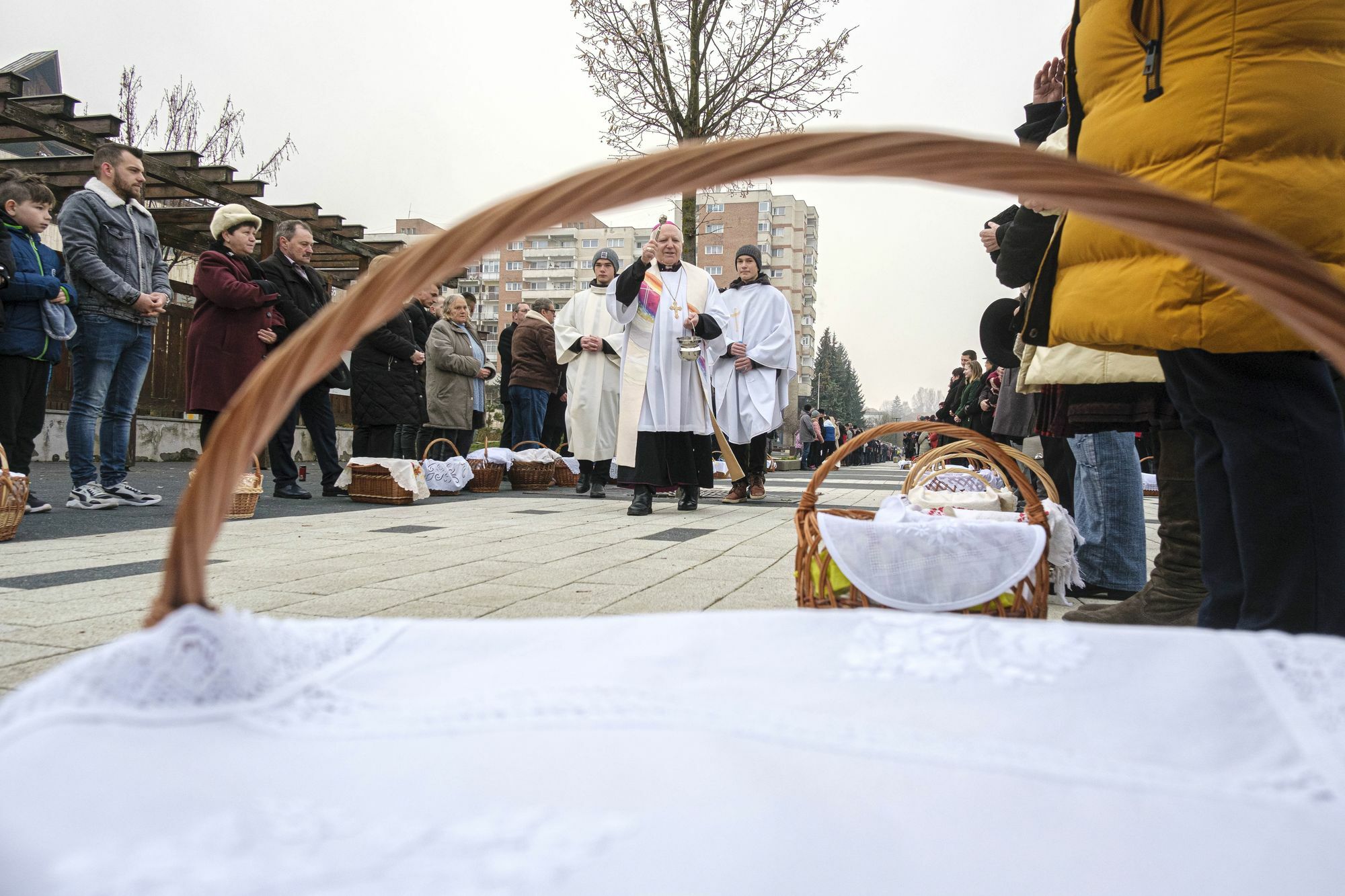 Csíkszereda főterén tartották meg a hagyományos húsvétvasárnapi ételszentelést. A sonkát, tojást, kalácsot és bort tartalmazó kosarakat Tamás József nyugalmazott segédpüspök áldotta meg.