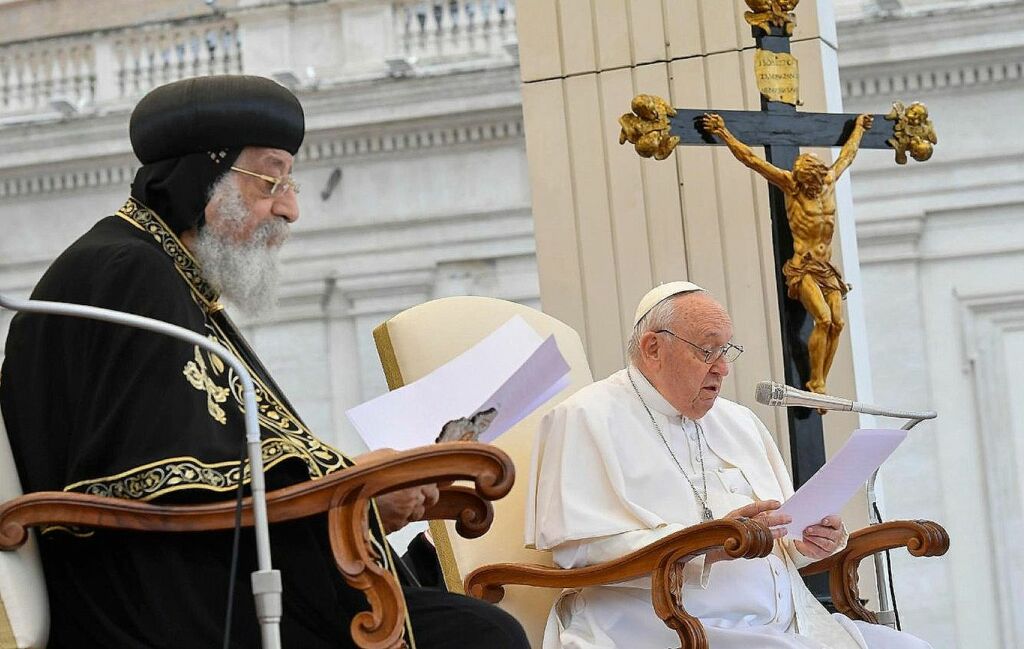 Ferenc pápa és a kopt pápának nevezett II. Teodor pátriárka – az egyháztörténetben először – közösen vezette az általános kihallgatást a vatikáni Szent Péter téren szerdán.
