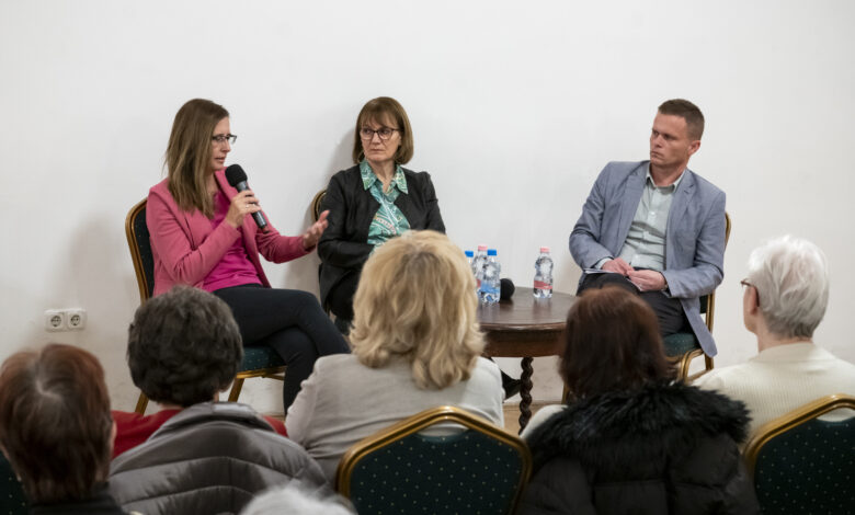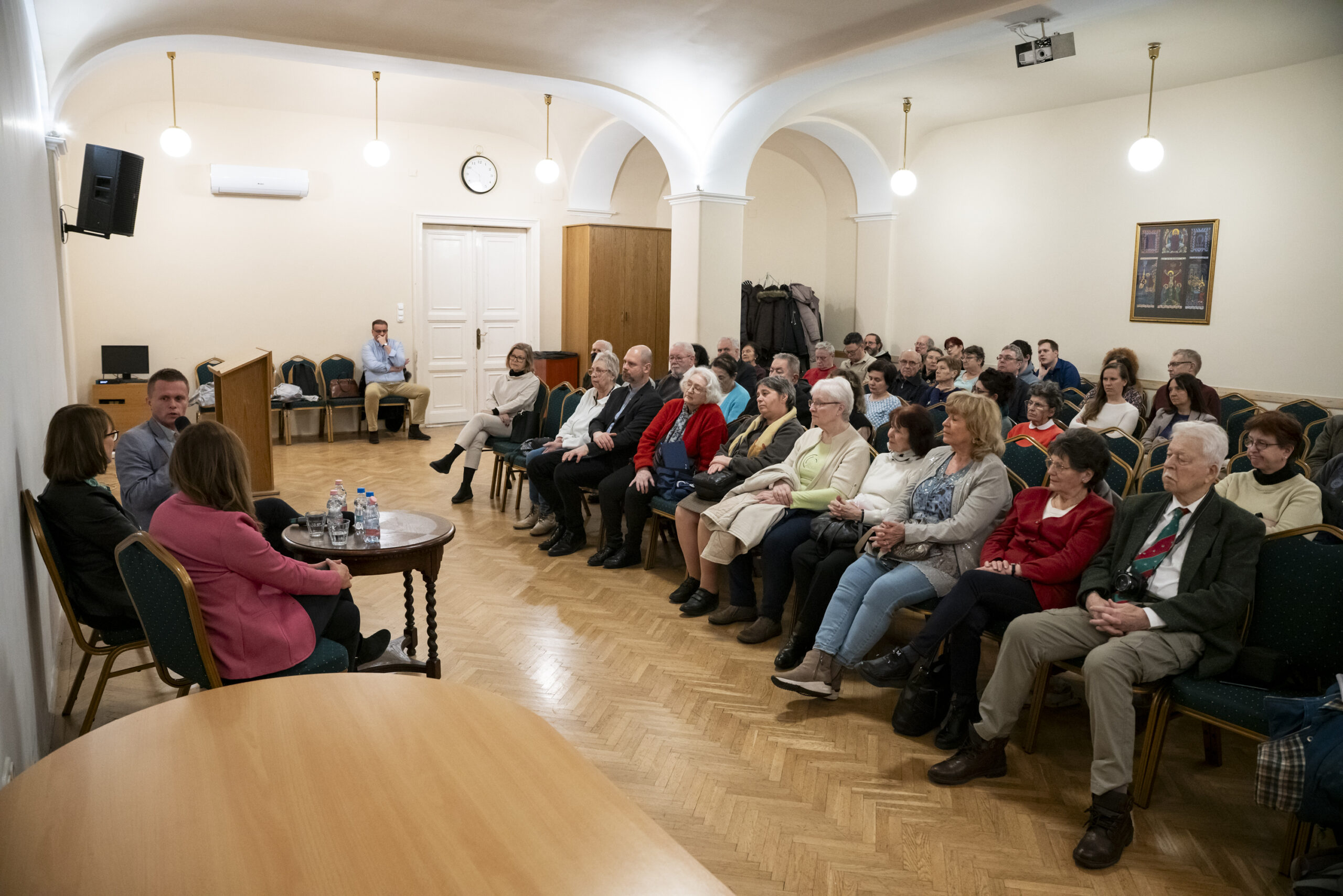 Vezetőkép: A nemzedékeken átívelő traumákról beszélgetett Skrabski Fruzsina, Tapolyai Emőke és Molnár László (b-j) 2025. február 27-én, az újbudai KDNP estjén. Fotó: Vasárnap.hu/Varga Ilona