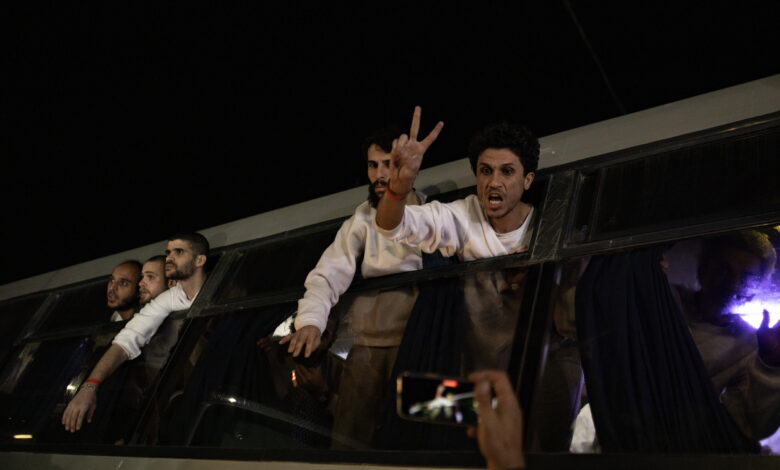 Vezetőkép: Az Izrael és a Hamász palesztin iszlamista szervezet közötti tűzszüneti, túsz-, illetve fogolycsere megállapodás keretében egy izraeli börtönből szabadon engedett palesztinok ünnepelnek a ciszjordániai Hán-Júniszban 2025. február 27-én. Az Izrael és a Hamász közötti tűzszünet január 19-én lépett életbe. Fotó: MTI/EPA/Haiszam Imad