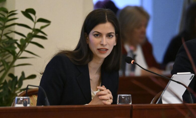 Vezetőkép: Szentkirályi Alexandra, a Fidesz-KDNP frakcióvezetője felszólal a Fővárosi Közgyűlés ülésén a Városháza dísztermében 2025. február 26-án. Fotó: MTI/Purger Tamás