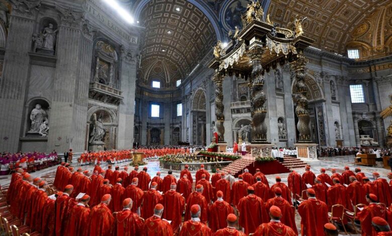 Vezetőkép: A bíborosok a megválasztandó pápáért bemutatott misén vettek részt a Szent Péter-bazilikában 2025. május 7-én. Fotó: Facebook/Vatican News