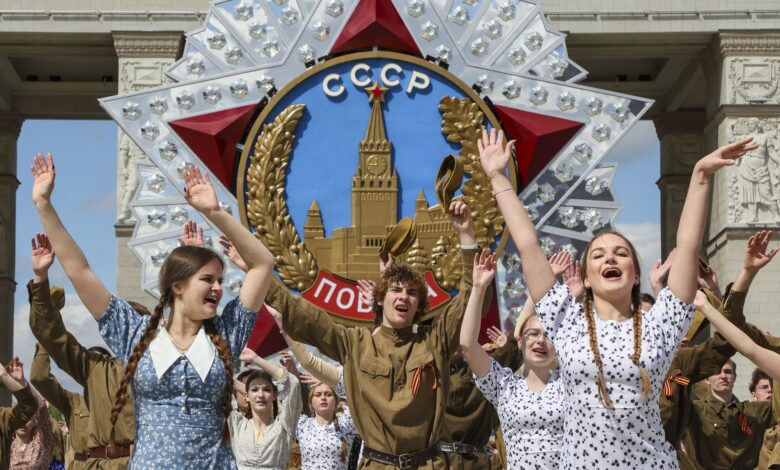 Vezetőkép: Korhű ruhákat viselő fiatalok táncolnak a Győzelmi keringő elnevezésű rendezvényen a moszkvai VDNH kiállítási központnál levő téren 2025. május 6-án. A táncbemutatót mintegy kétszáz pár részvételével tartották a második világháború lezárásának évfordulója alkalmából szervezett rendezvénysorozat részeként. Oroszország május 9-én ünnepli a második világháborúban a náci Németország és szövetségesei felett aratott győzelem 80. évfordulóját. Fotó: MTI/EPA/Jurij Kocsetkov