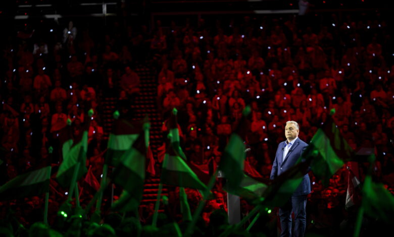 Vezetőkép: Orbán Viktor miniszterelnök a Harcosok klubja elnevezésű rendezvényen a budapesti BOK Sportcsarnokban 2025. május 18-án. Fotó: MTI/Miniszterelnöki Kommunikációs Főosztály/Fischer Zoltán