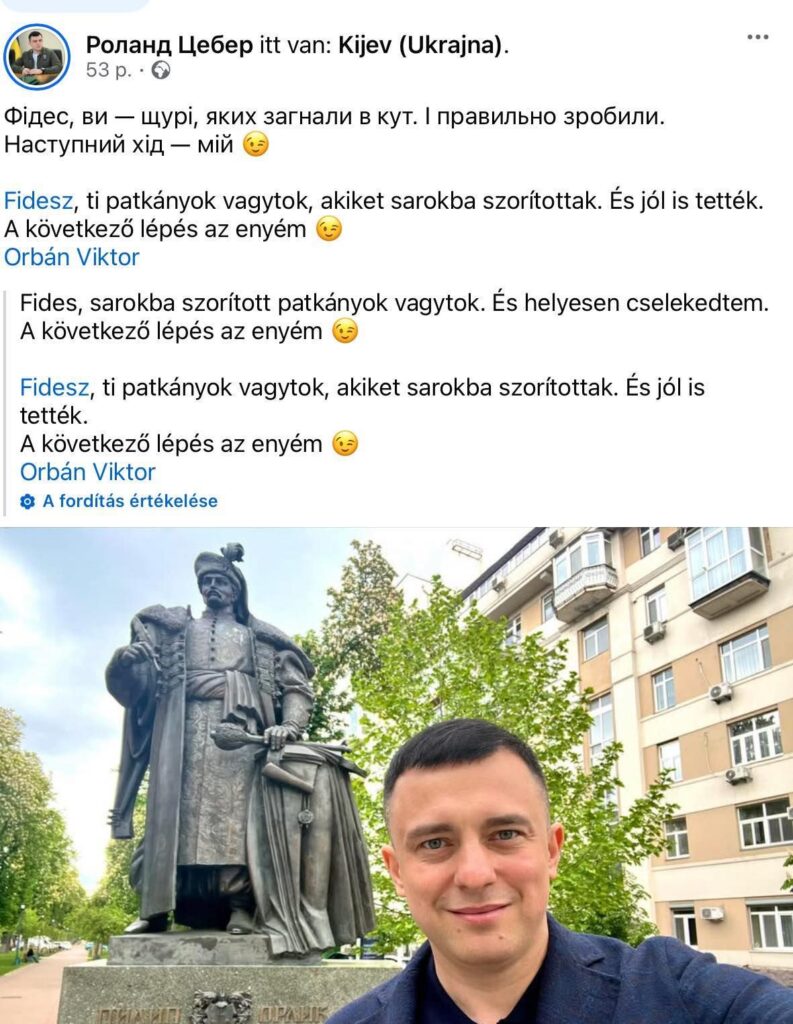 „Itt a Békések Ligája első posztja. Patkányozva fenyegetőzik az, akit Magyar Péter »testvérének« nevezett. Na, ebből a Tiszás »szeretetországból« nem kérünk. Legutóbb Bangónétól hallottunk ilyet. Csak a szereplők változnak a műsor és a gyűlölködés nem. Nekünk Magyarország az első, nekik Ukrajna.”