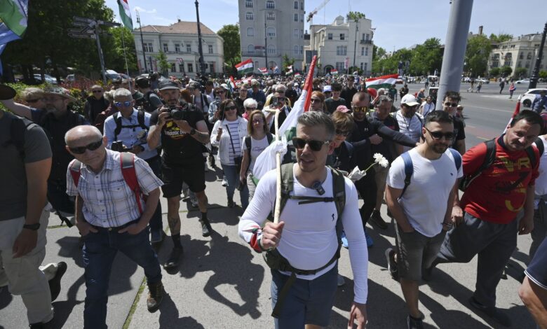 Vezetőkép: Magyar Péter, a Tisza Párt elnöke szimpatizánsai között az Egymillió lépés a békéért és a nemzeti összefogásért elnevezésű országjáráson a Hősök terén 2025. május 14-én. Fotó: MTI/Balogh Zoltán