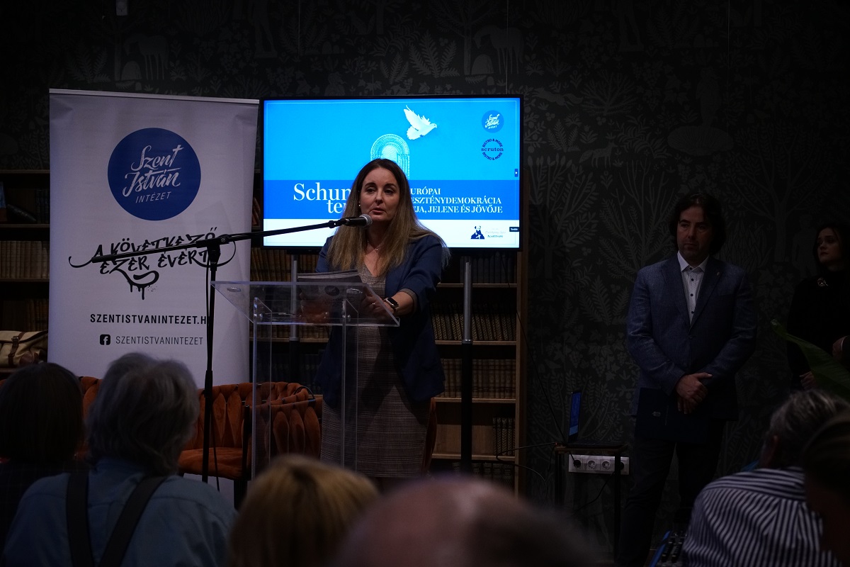 Dr. Máthé Zsuzsa, a Szent István Intézet igazgatója elöljáróban arról beszélt, Robert Schumant ma az Európai Unió lelkiismeretének tartják, akivel már életében is nehezen tudtak mit kezdeni azok, akiket például zavart, hogy folyton imádkozik. A Schuman-terv elmúlt 75 évére emlékezni véleménye szerint azért is fontos, mert felveti annak kérdését, maga Schuman mit gondolna a mai Európáról.