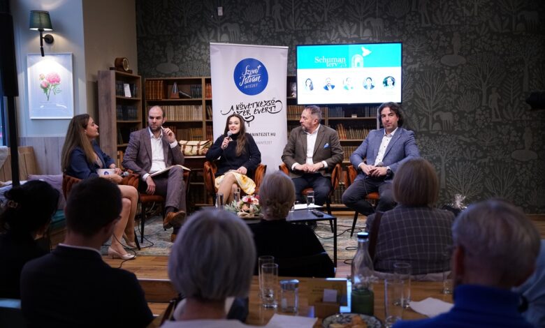 A két előadást követő pódiumbeszélgetésen is elhangzottak természetesen érdekes, értékes gondolatok, amelyekből idéznénk néhányat. Halkó Petra, a 21. Század Intézet vezető elemzője egyebek mellett arról beszélt, a Schuman-terv nehézsége abban állt, hogy biztosítania kellett, hogy Európában ne legyen újabb háború. Ehhez ki kellett alakítani az együttműködést és a gazdasági érdekeket is közös nevezőre kellett hozni. Az alapvető elképzelés tehát a nemzetek egyesült Európája, erős országokkal, és a nemzeti sajátosságok tiszteletben tartásával.