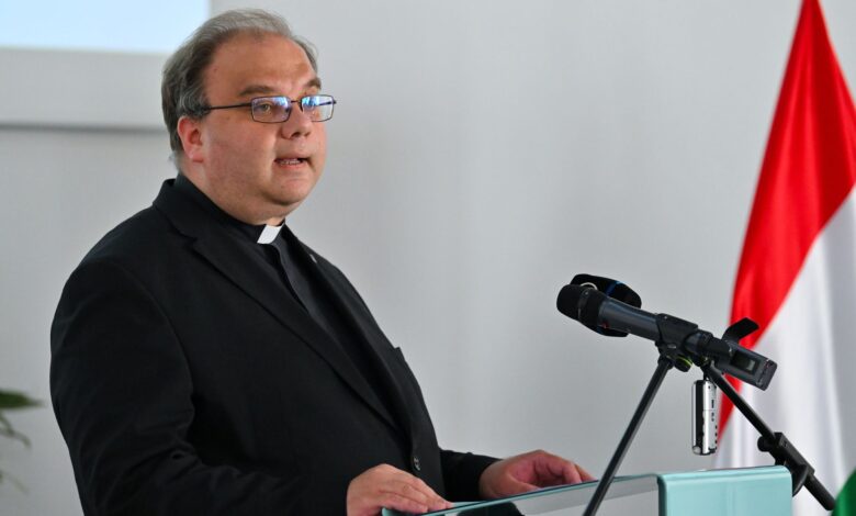 Vezetőkép: Zsódi Viktor piarista tartományfőnök beszédet mond az Apáczai Csere János-díjak és az oktatói szolgálati emlékérmek átadásán a váci Piarista Kilátó Központban 2024. június 18-án. Fotó: MTI/Purger Tamás