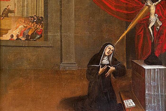 Férje rossz természetét hősies türelemmel viselte, soha nem panaszkodott. Mindenben engedelmeskedett hitvesének, azzal az egy föltétellel, hogy a templomba eljárhat. Szelídségével és jóságával végül is férje rossz természetét sikerült legyőznie, és lelkét Istenhez vezetnie. Megtérésének együtt örült Ritával az egész falu, Roccaporena, mert korábban a férj összeférhetetlensége miatt sokat szenvedett a pártoskodásoktól és viszálykodásoktól.