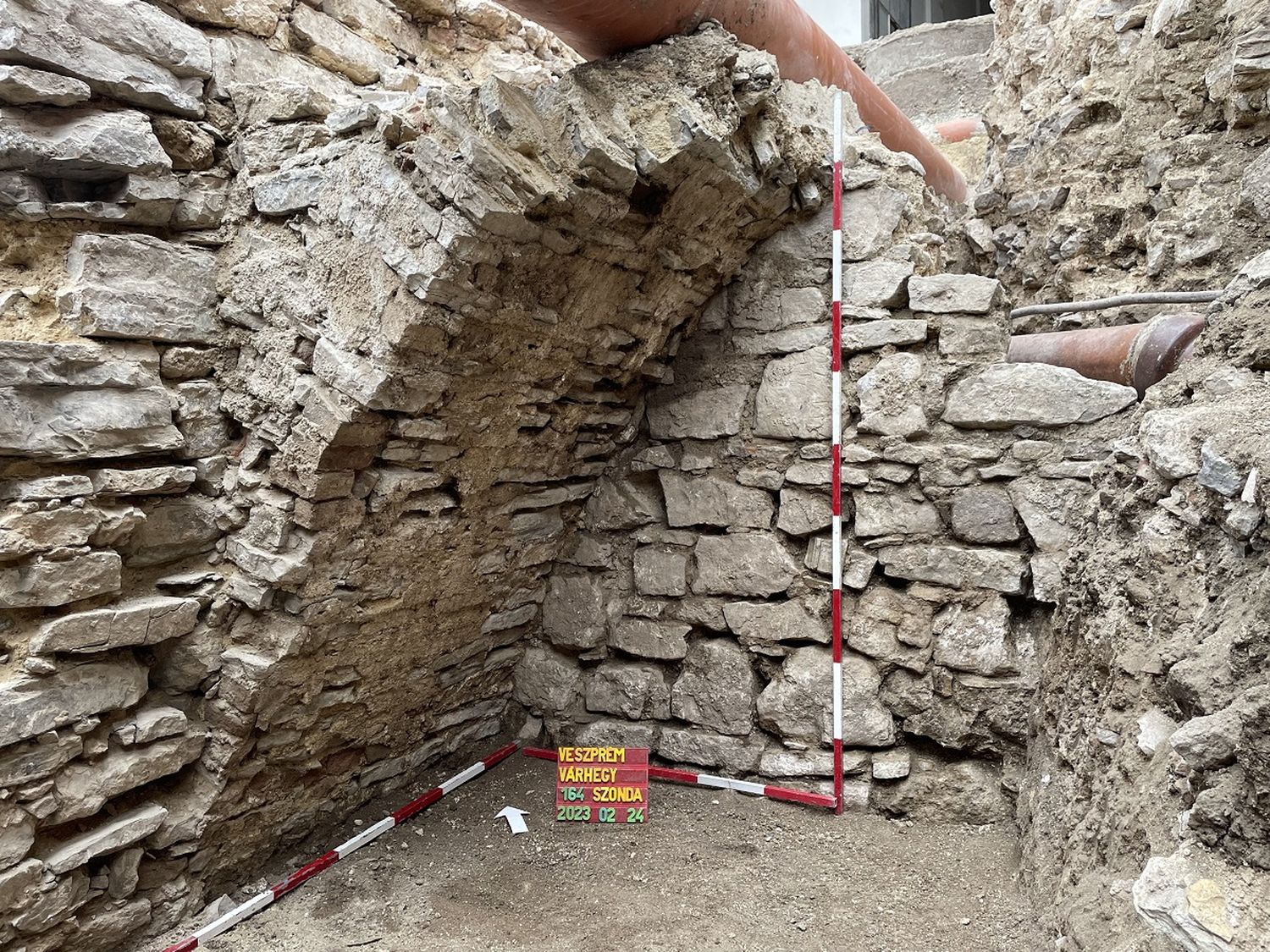 – mondja Hegyi Dóra, a Magyar Nemzeti Múzeum Közgyűjteményi Központ Nemzeti Régészeti Intézetének ásatásvezető régésze. A veszprémi várnegyed 18 érsekségi épületének megújítása jelentős műemléki beruházás, amely kiemelt régészeti területen zajlik, emiatt hangsúlyos régészeti munka kíséri – ennek részeként tárták fel a Piarista Gimnázium udvarán azt a két és fél méter vastag, a 13-14. század fordulójából származó falszakaszt, amelyre már az 1970-es években felfigyeltek a szakemberek.