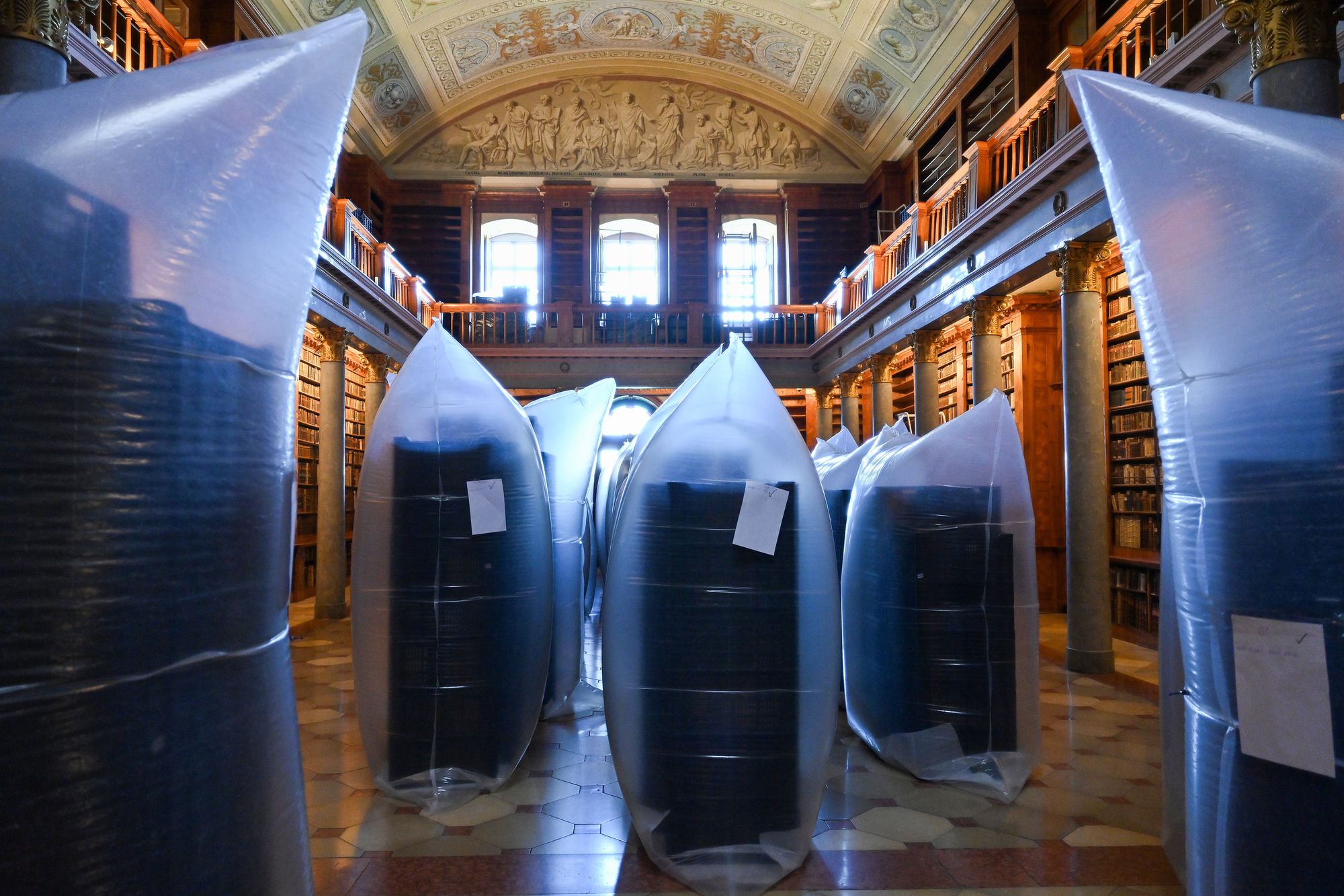 A ládahalmokat igyekeznek úgy tenni, hogy a polcok és a könyvek sorrendje is megmaradjon a visszapakoláshoz. A ládahalmokat felfújt zsákokba emelik, amelyeket légmentesen lezárnak és az oxigént nitrogénnel helyettesítik.