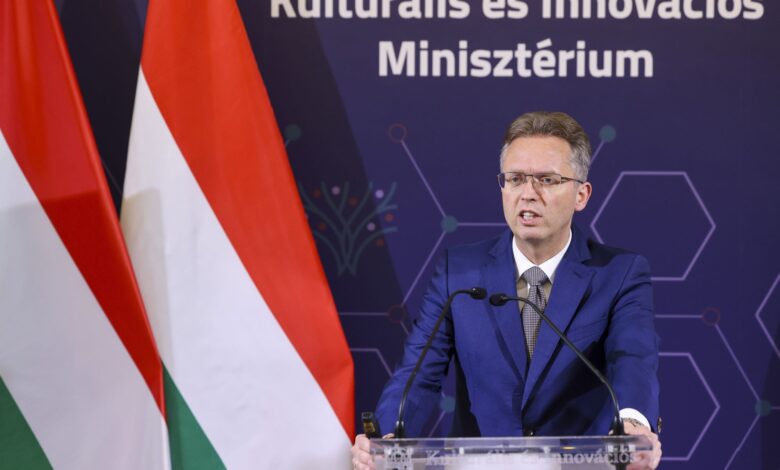 Vezetőkép: Hankó Balázs kultúráért és innovációért felelős miniszter a felsőoktatási felvételi ponthatárok kihirdetéséről tartott sajtótájékoztatón a Kulturális és Innovációs Minisztériumban 2025. július 24-én. Fotó: MTI/Hegedüs Róbert