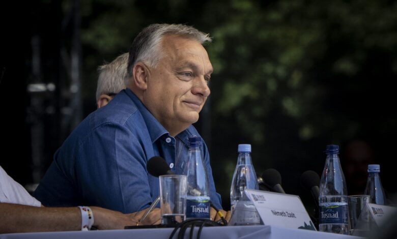 Vezetőkép: Orbán Viktor miniszterelnök előadást tart a 34. Bálványosi Nyári Szabadegyetem és Diáktáborban az erdélyi Tusnádfürdőn 2025. július 26-án. Fotó: MTI/Miniszterelnöki Kommunikációs Főosztály/Fischer Zoltán