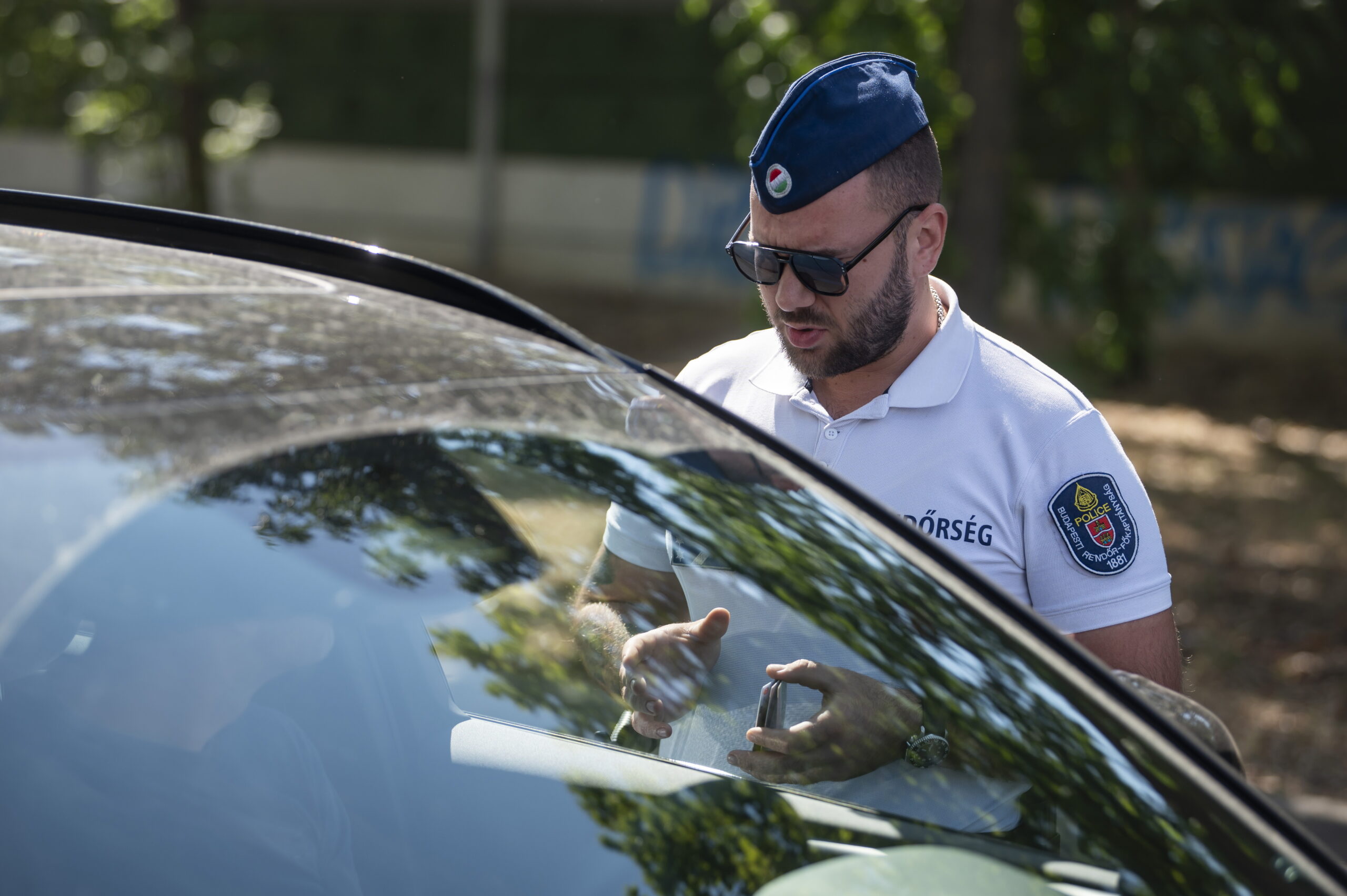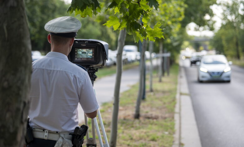 Vezetőkép: Sebességet mér egy rendőr Budapesten, a Kacsóh Pongrác úton 2025. augusztus 4-én. A rendőrség augusztus 4. és 10. között Magyarország egész területén sebességellenőrzést végez a gyorshajtók kiszűrése érdekében. Fotó: MTI/Balogh Zoltán