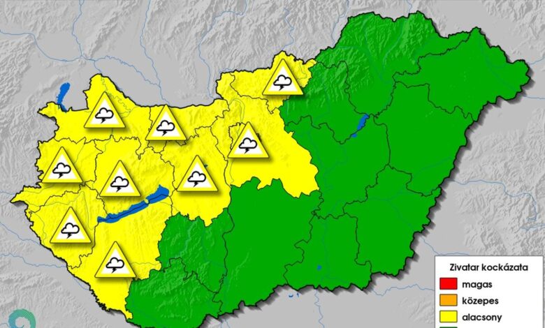 A HungaroMet Zrt. szerdára Somogy, Vas, Zala, Győr-Moson-Sopron, Veszprém, Komárom-Esztergom, Fejér, Pest és Nógrád vármegyére elsőfokú (sárga) figyelmeztetést adott ki zivatar kialakulásának veszélye miatt.