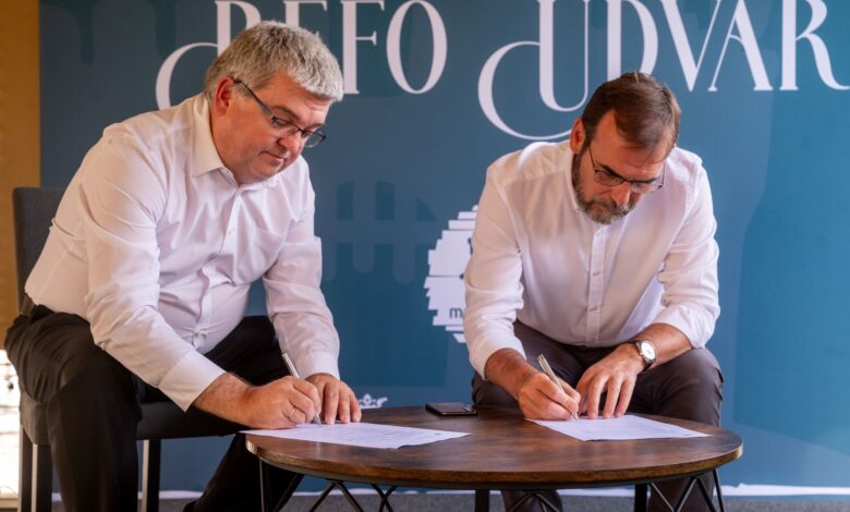 Vezetőkép: Czibere Károly, a Magyar Református Szeretetszolgálat elnöke és Kolumbán Vilmos József, az Erdélyi Református Egyházkerület püspöke adományozási szerződést ír alá Kolozsváron 2025. augusztus 21-én. Fotó: MTI/Kiss Gábor