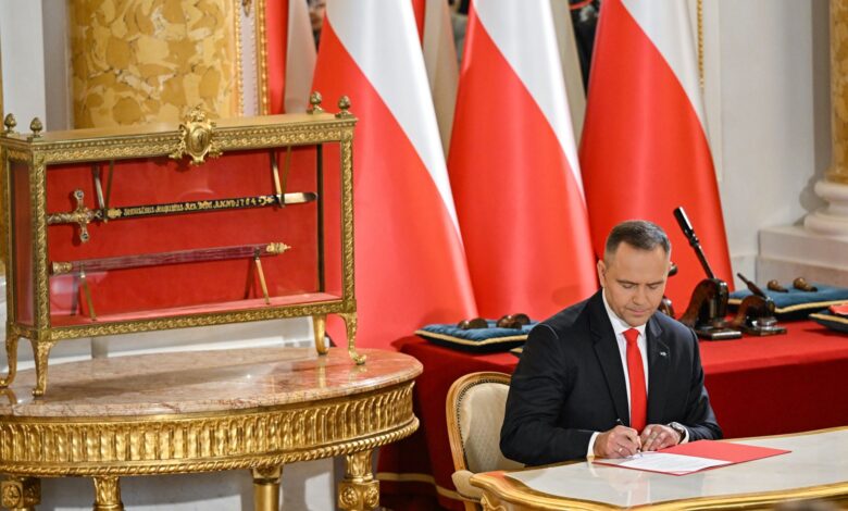 Vezetőkép: Karol Nawrocki újonnan beiktatott lengyel elnök a varsói királyi várban rendezett ünnepségen, ahol államfőként a két legmagasabb lengyel kitüntetés, a Fehér Sas Érdemrend és a Lengyelország Újjászületése Érdemrend nagymesterévé avatják 2025. augusztus 6-án. Fotó: MTI/EPA/PAP/Radek Pietruszka