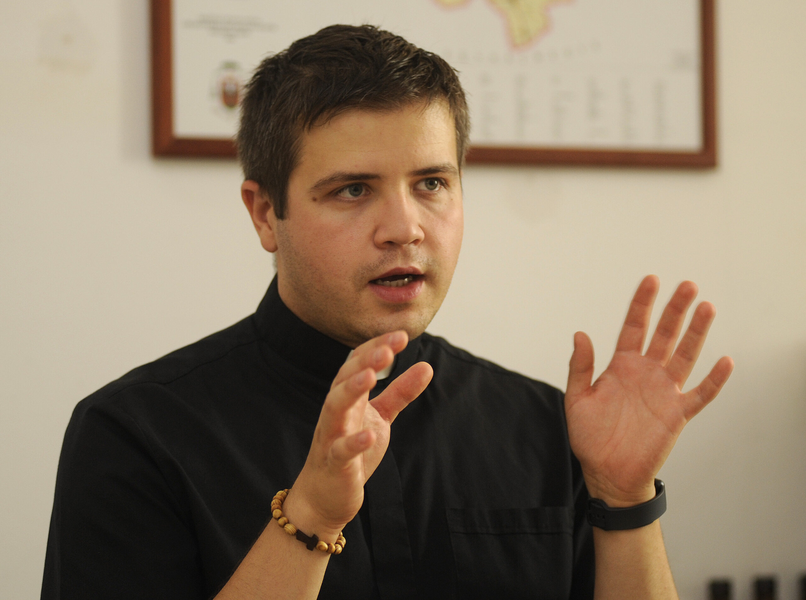 Vezetőkép: Szlama Ákos katolikus pap, csákvári káplán, a Székesfehérvári Egyházmegye ifjúsági referense. Fotó: Vasárnap.hu/Kricskovics Antal