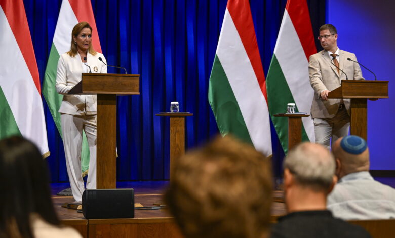 Vezetőkép: Vitályos Eszter kormányszóvivő és Gulyás Gergely, a Miniszterelnökséget vezetõ miniszter a Kormányinfó sajtótájékoztatón a Karmelita kolostorban 2025. július 16-án. Fotó: MTI/Purger Tamás