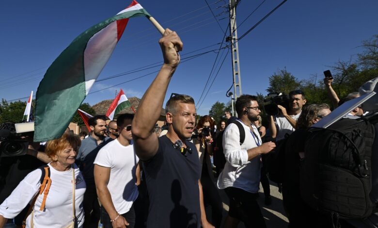 Vezetőkép: Magyar Péter, a Tisza Párt elnöke (középen) a párt kötcsei rendezvényére érkezik 2025. szeptember 7-én. Fotó: MTI/Koszticsák Szilárd